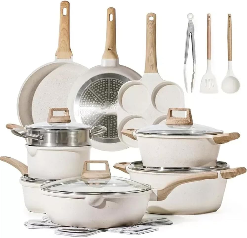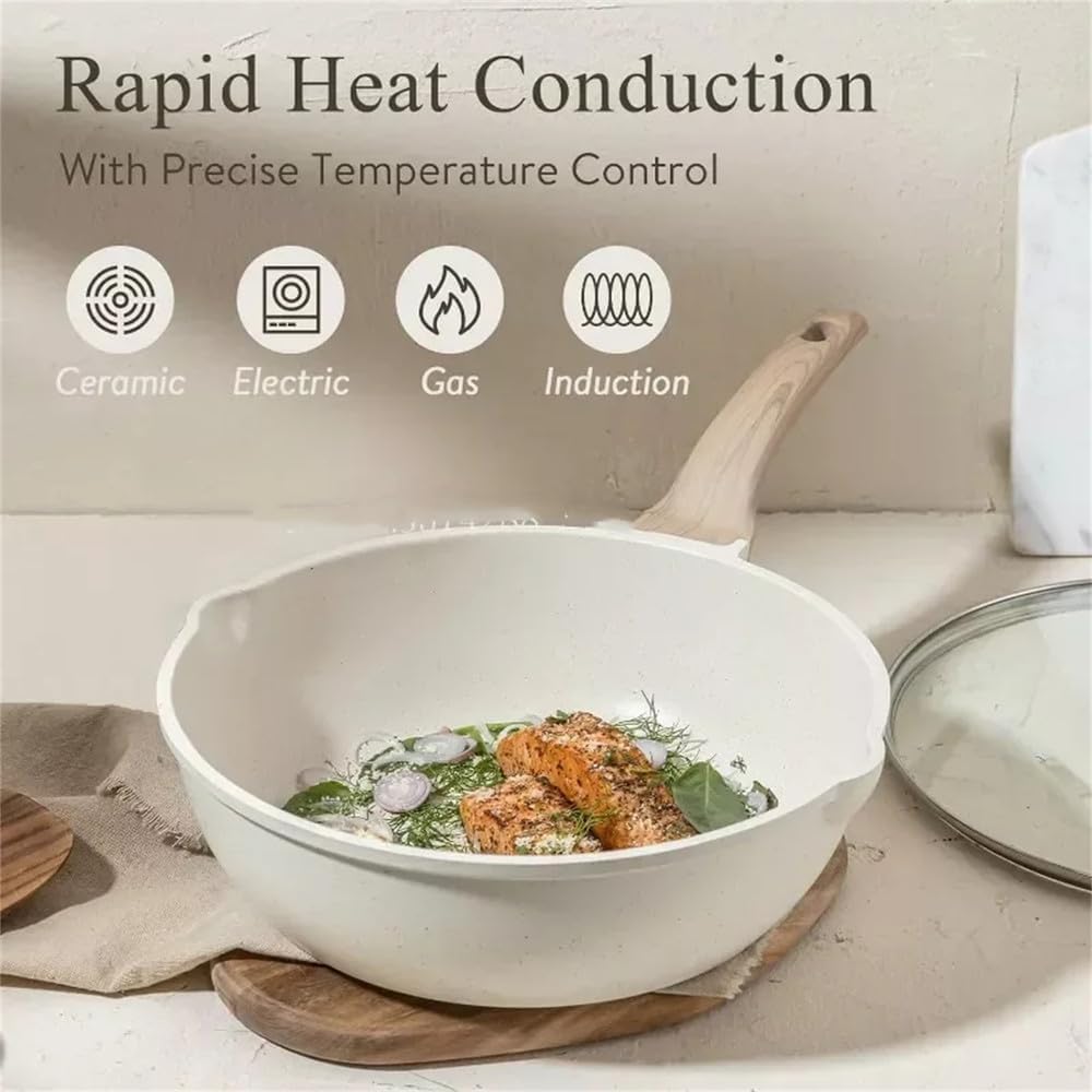 【Easy Cleansing】Simplify your kitchen routine with our cooking set, designed for straightforward cleansing and upkeep. Merely wipe with a paper towel or rinse with water to scale back time and water waste