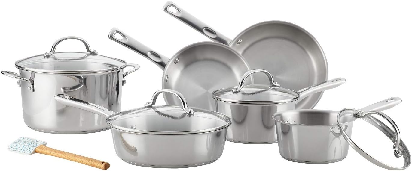 Set contents: 1.5-Quart Lined Saucepan, 2-Quart Lined Saucepan, 3-Quart Lined Sauté, 6-Quart Lined Stockpot, 8.5-Inch Skillet, 10-inch Skillet, 11.5-Inch Spatula