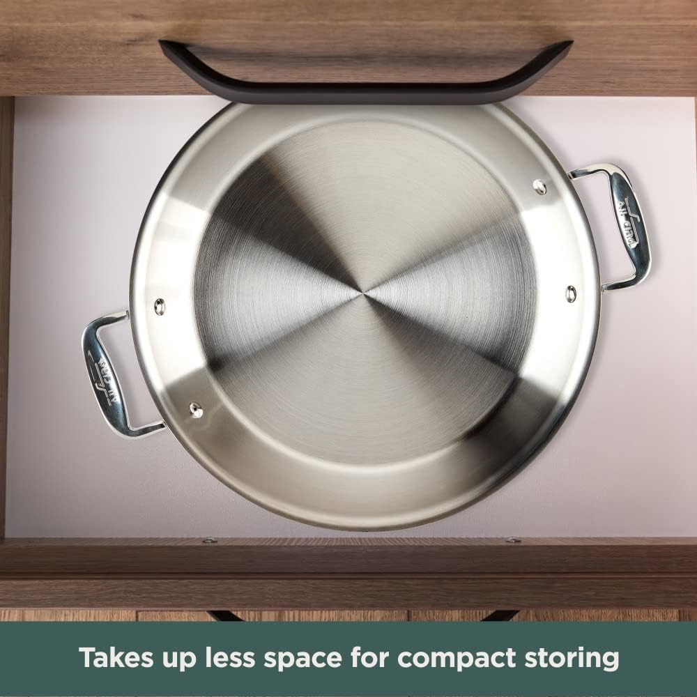 5-ply bonded development with alternating layers of chrome steel and aluminum for warp-free sturdiness and supremely even heating that eliminates hotspots