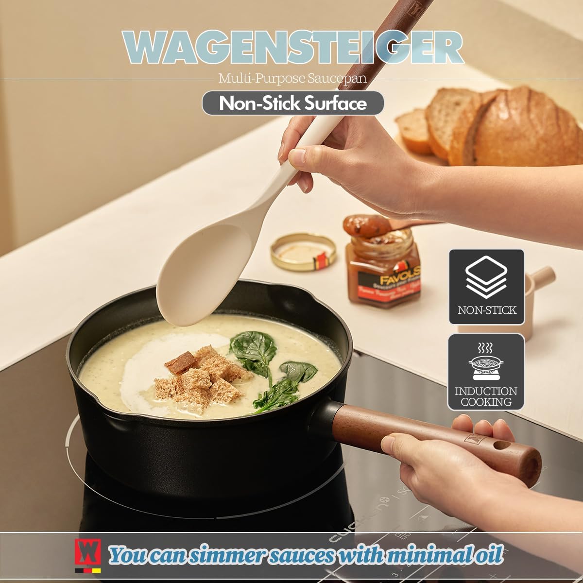 ENHANCED NONSTICK AND OIL RETENTION: The WAGENSTEIGER Sauce Pan options an progressive coating know-how that retains oil, permitting for oil-free cooking and a low-fat eating regimen. This non-stick floor ensures you can simmer sauces with minimal oil, making your recipes more healthy and cooking extra satisfying.