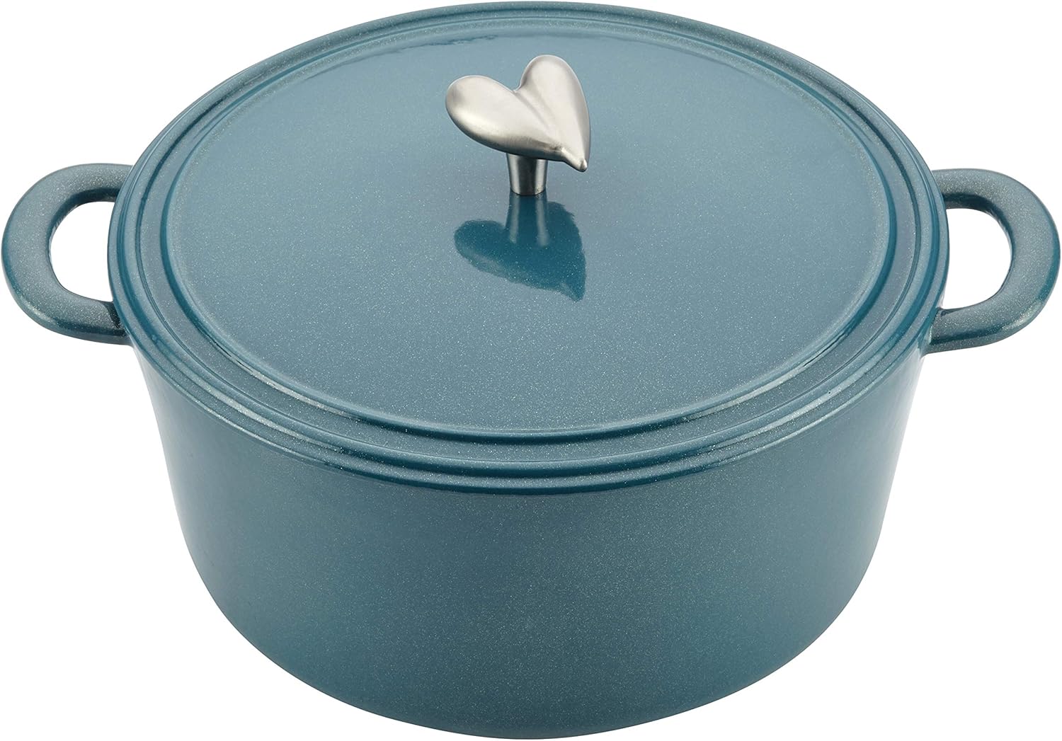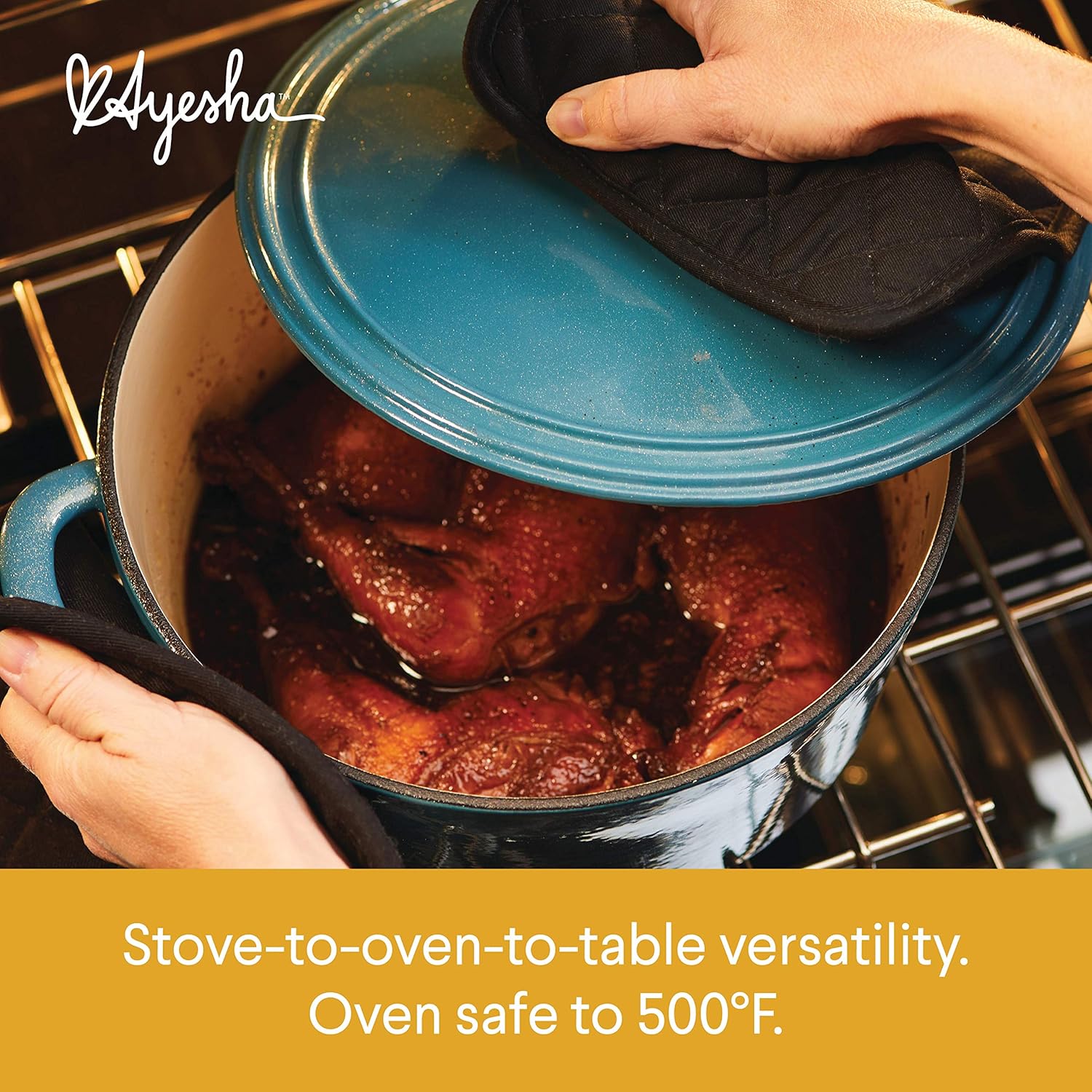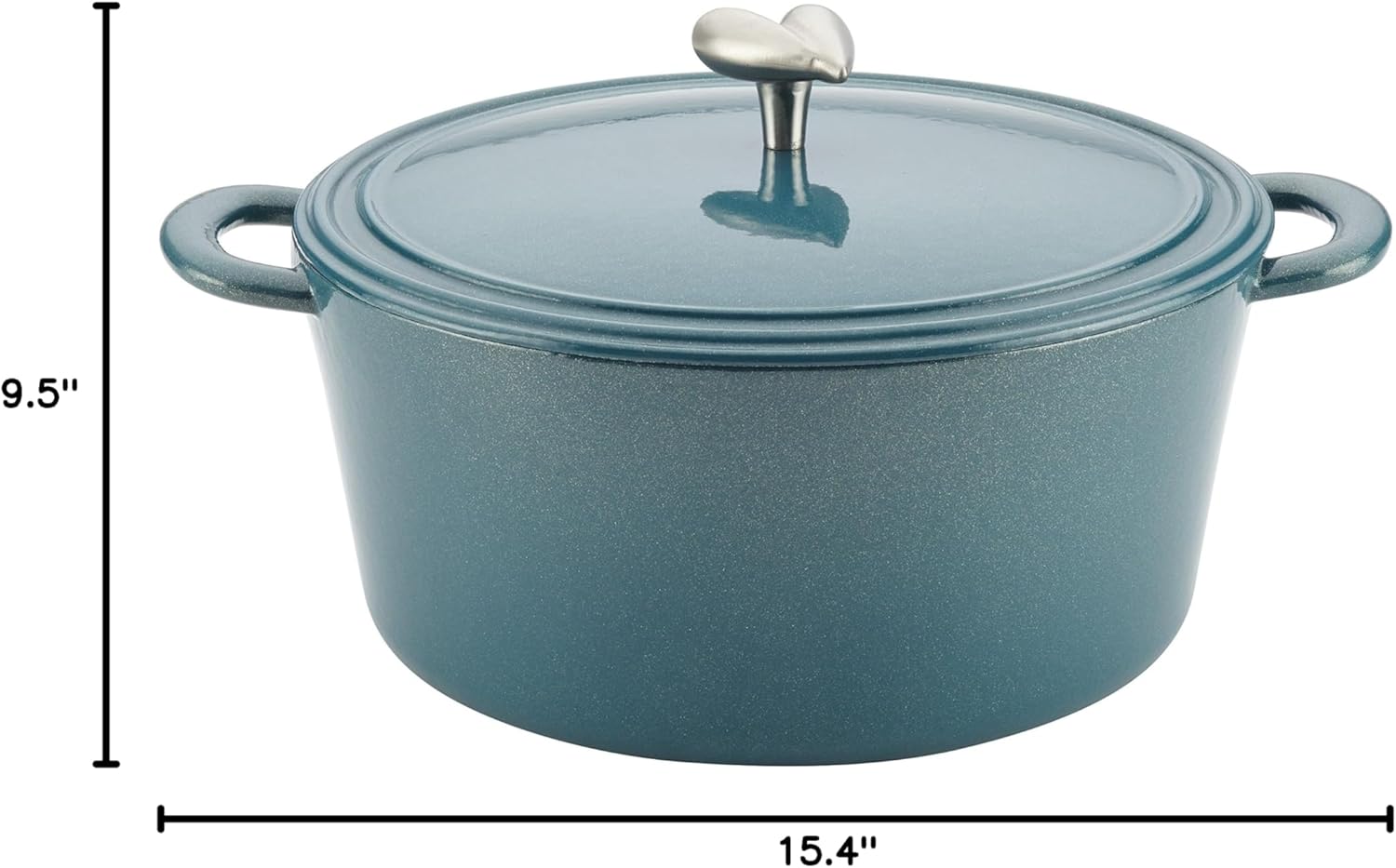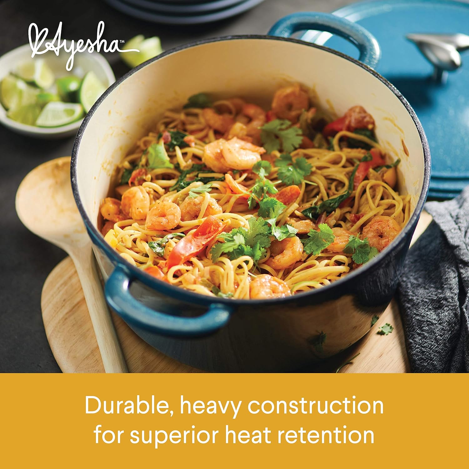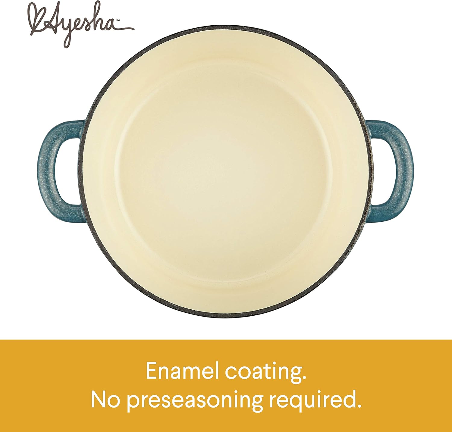 Ayesha Curry Cast Iron Enamel Casserole Dish/ Casserole Pan / Dutch Oven with Lid – 6 Quart, Twilight Teal