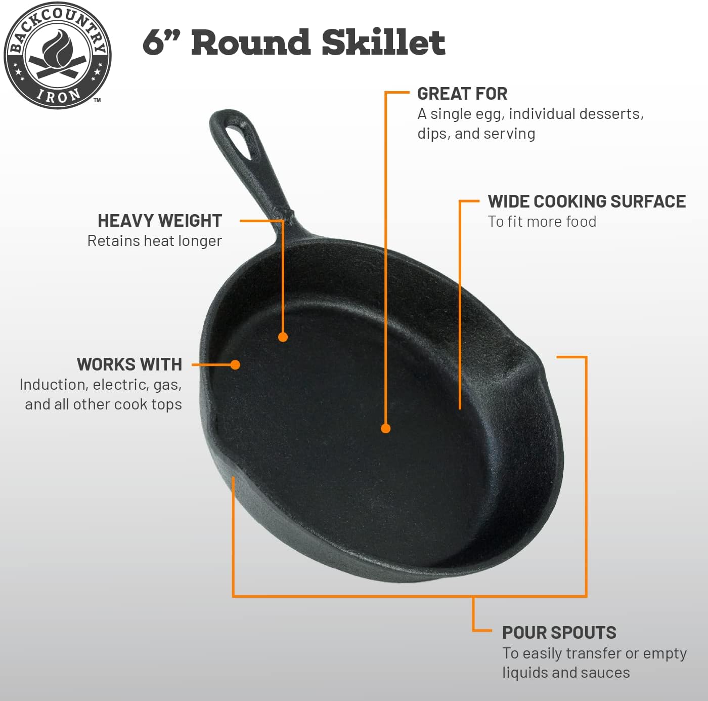 Our 6 inch forged iron skillet is absolutely suitable with fuel, electrical, and induction cooktops. It’s also possible to use this skillet within the oven, broiler, on the grill, BBQ or within the hearth pit. Our skillet’s versatility makes them nice for searing, roasting, baking, braising, and frying. This small preseasoned skillet is nice for dips, and desserts!
