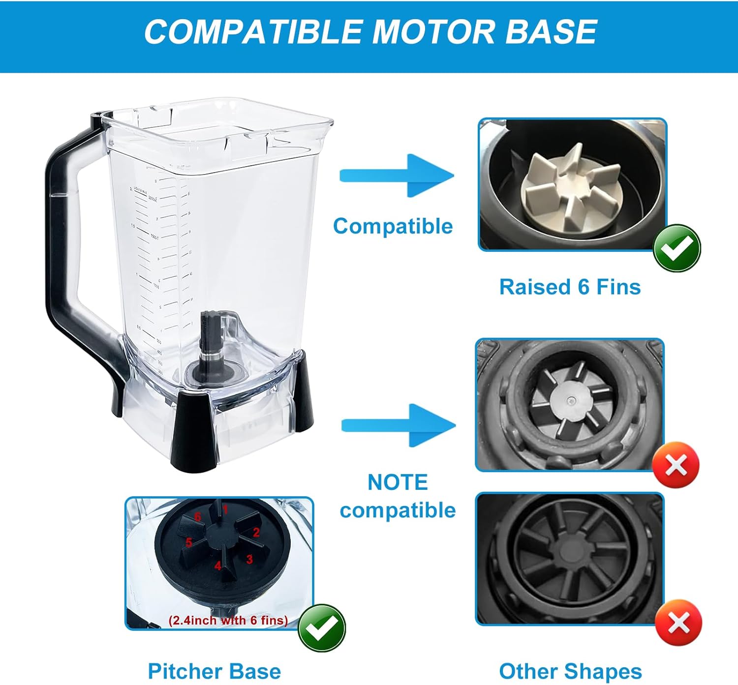 【TIPS】 We DON’T CLAIM our alternative 72oz crushing pitcher for ninja are authentic; ONLY ONE PITCHER is within the bundle, locking lid is NOT INCLUDED; The alternative for ninja blender pitcher has prolonged rims with protruding 6 fins gears on the underside. It’ll solely match NEW MODEL pitcher locking lids with deal with extensions and the outdated pitcher has the identical base as ours. Please verify photos rigorously earlier than buying to keep away from issues with mixer fashions and lids not becoming.