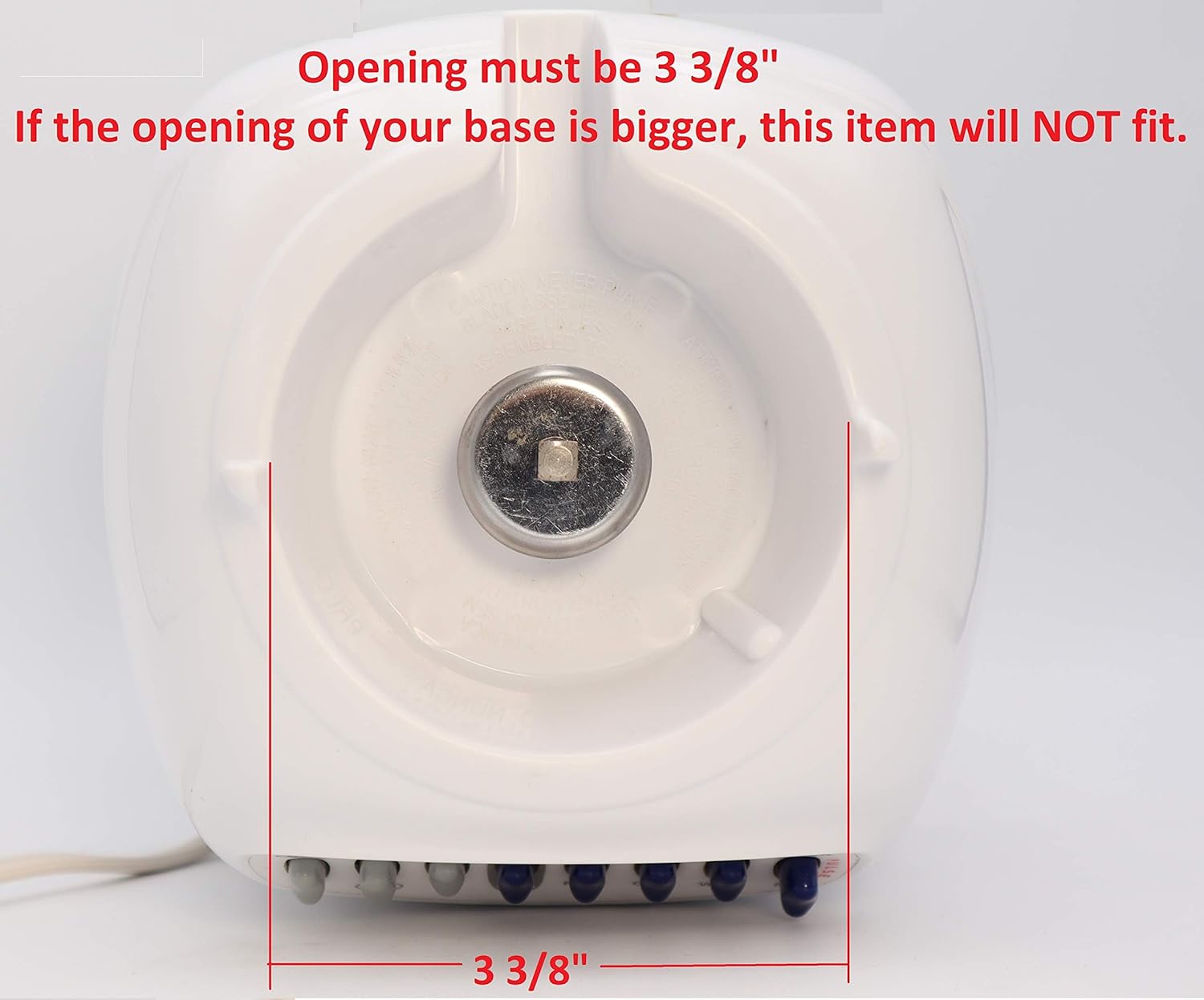 Appropriate with Oster Blenders that the motor base have opening of three 3/8″. Please see the third image. If the opening of your base is greater, this merchandise will NOT match. It match base diameter is 2 5/8″.