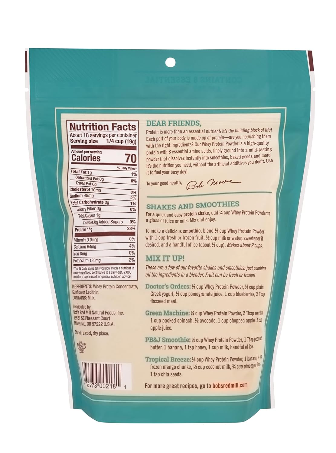 Bob’s Red Mill All Natural Whey Protein Powder, 12 Ounce