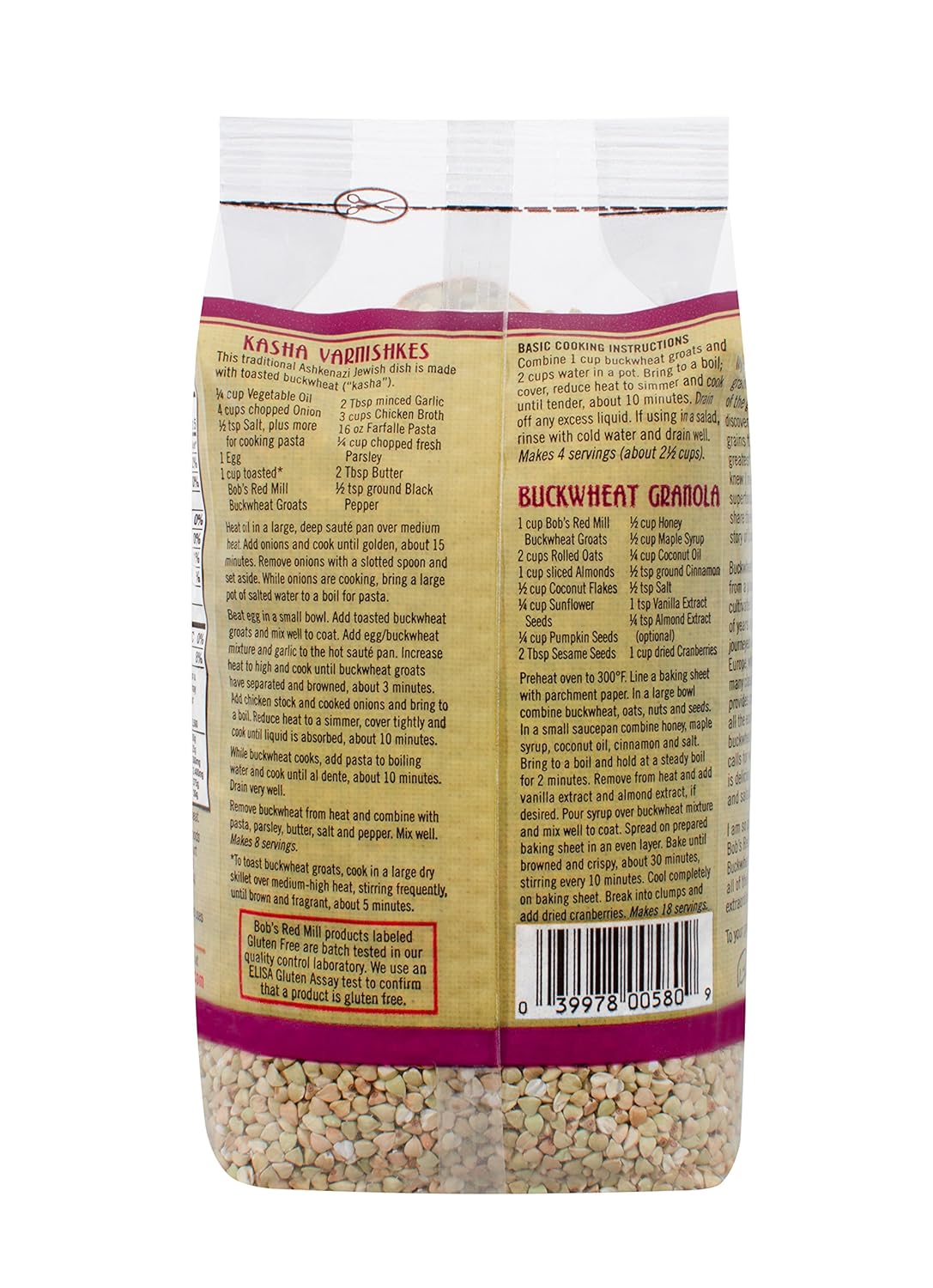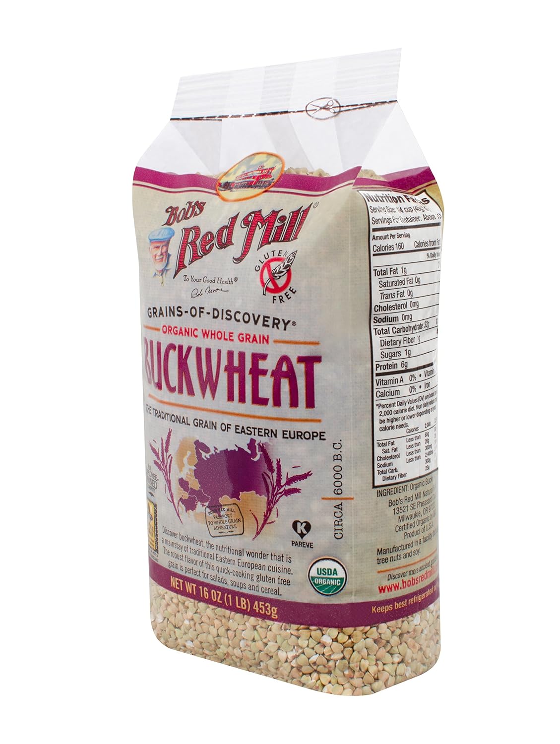 Bob’s Purple Mill, Natural Entire Grain Buckwheat Groats, Gluten Free, 16 Ounce (453 g).