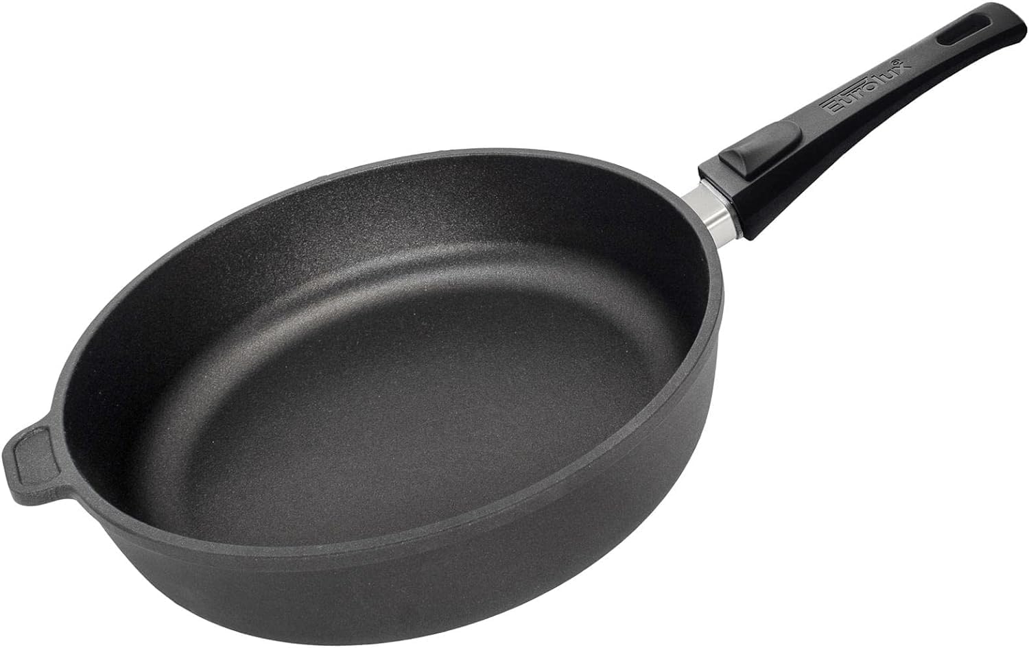 The excessive rim frying pan diameter 26 cm “Made in Germany” with a 7 cm excessive pouring rim is made of sturdy as much as 240 °C heat-resistant solid aluminium and outfitted with abrasion-resistant non-stick coating