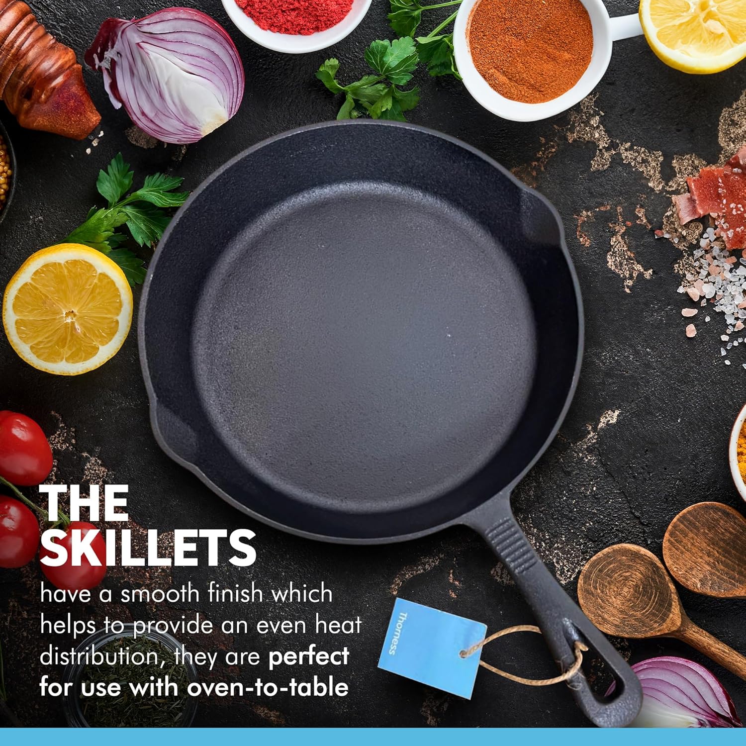 The skillets have a clean end which helps to supply an EVEN HEAT DISTRIBUTION, they’re excellent to be used with oven-to-table dishes. As they’re PRE-SEASONED, they require easy care however we might suggest you season earlier than every use to keep up the non-stick method. As they’re Forged iron must be hand washed with heat water and restored with pure oils that imply no cleaning soap or dishwasher use.