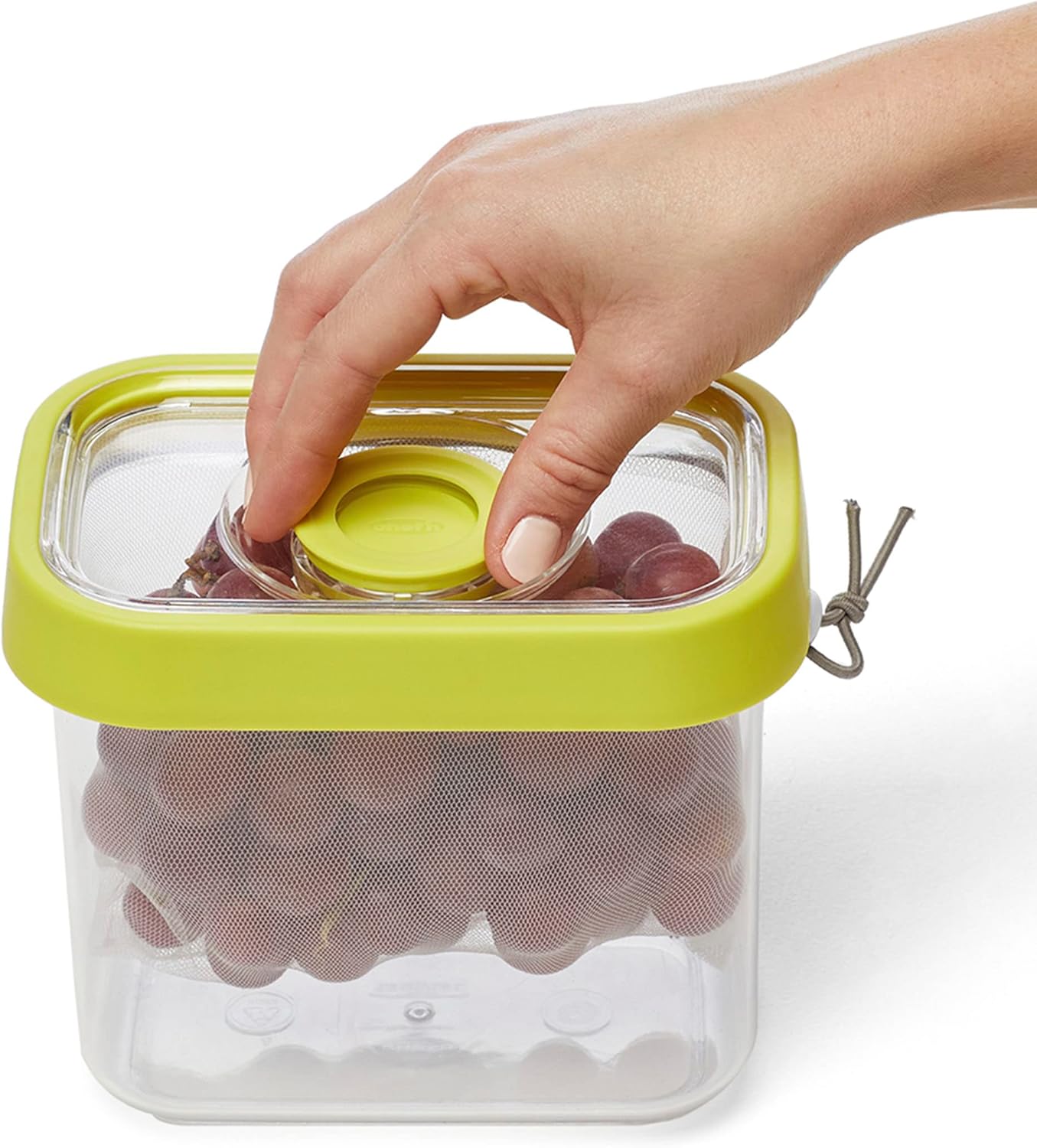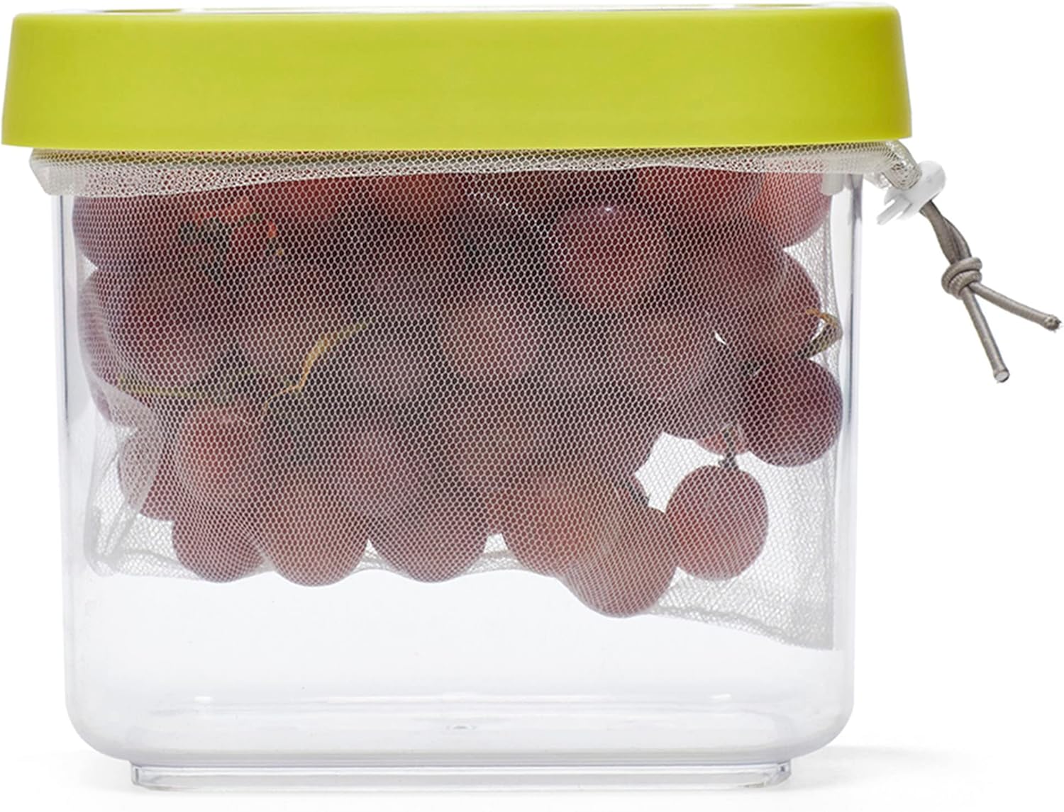 EASY TO CLEAN: Container and lid are top-rack dishwasher protected. For the produce bag, gently wash in cool water, then air dry.