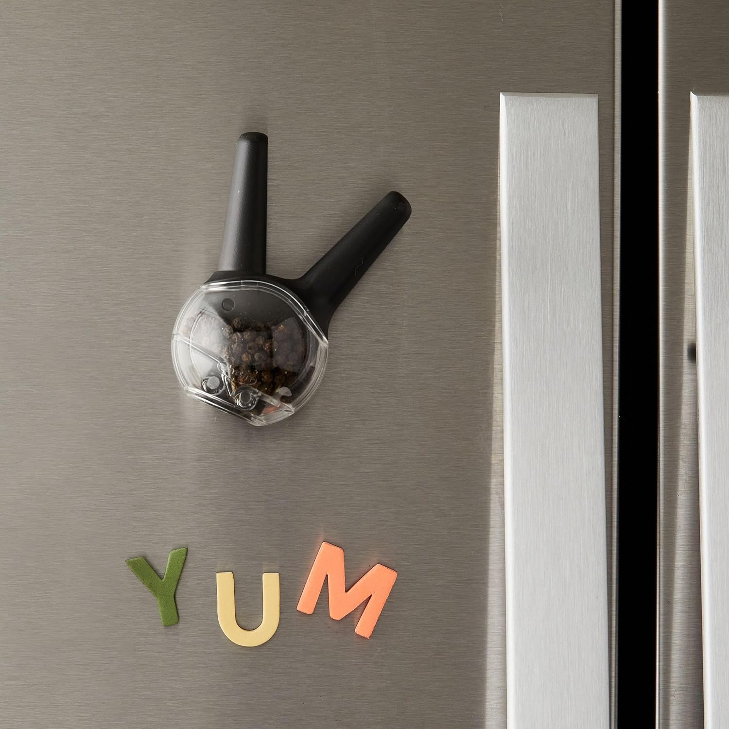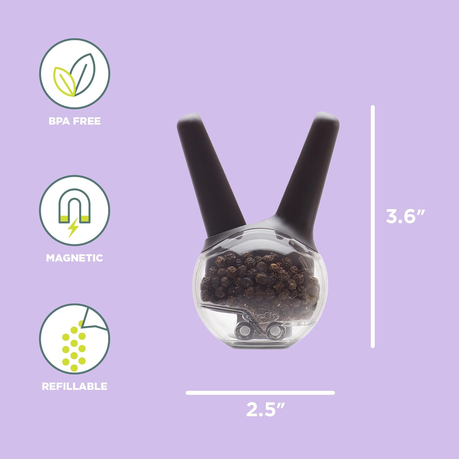Spice issues up! The Mini Pepperball is right for rapidly including salt or pepper to your meal whereas cooking or on the desk. It’s magnetized and stick with your vary or fridge, making it as handy as will be. Squeeze the handles to grind and simply twist to open the door on the again to refill with pepper or salt.