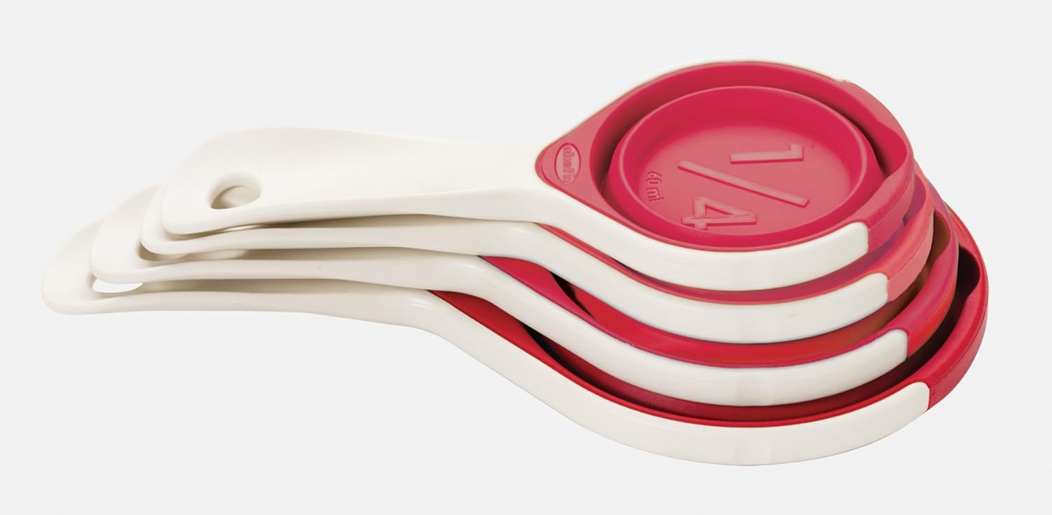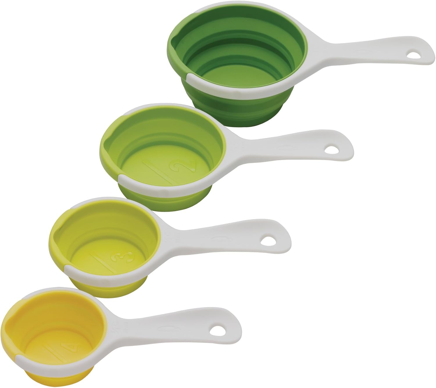 Flatten the collapsible 1, 1/2, 1/3, and 1/4 cups and nest collectively for handy space-saving storage.