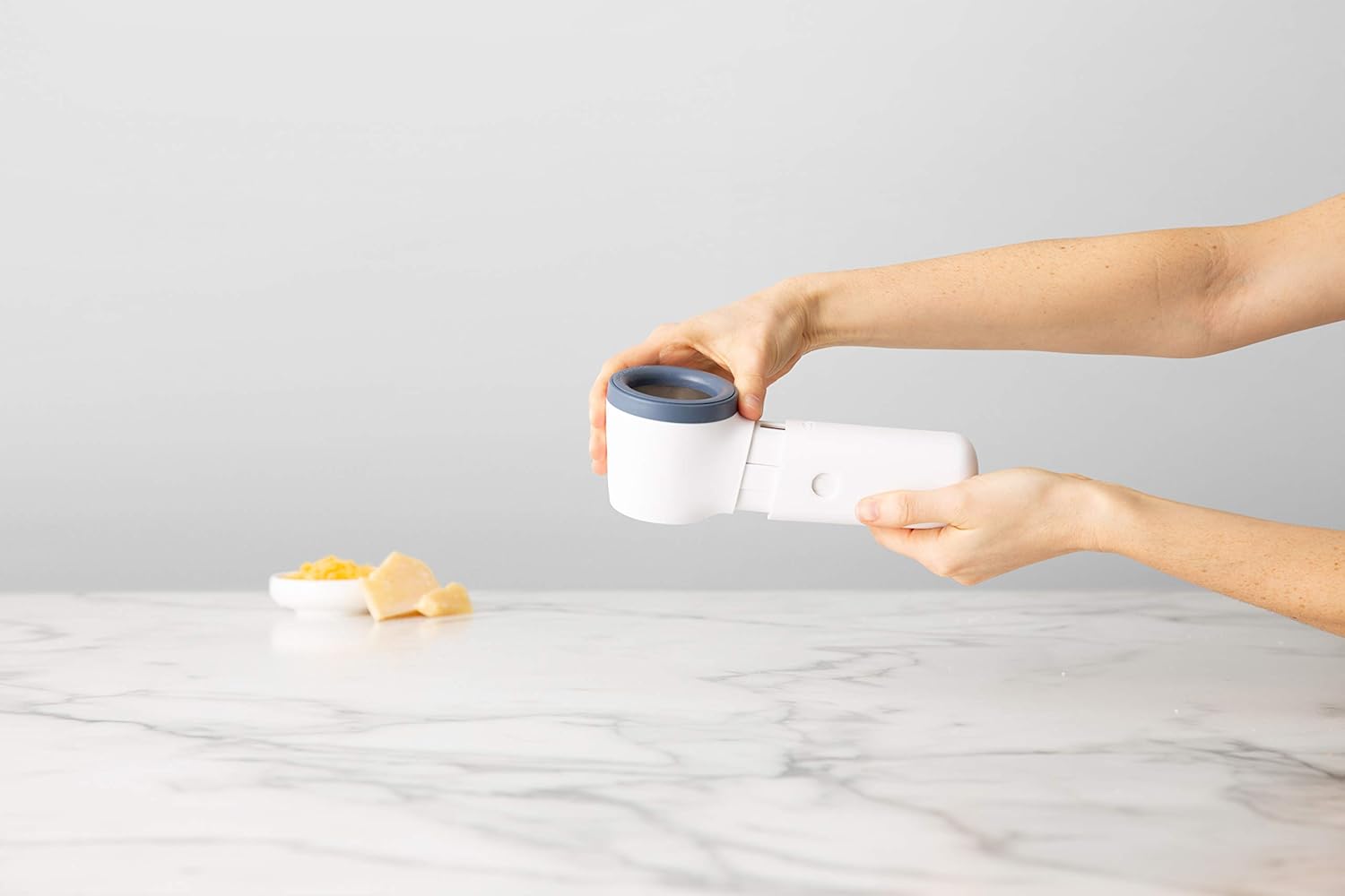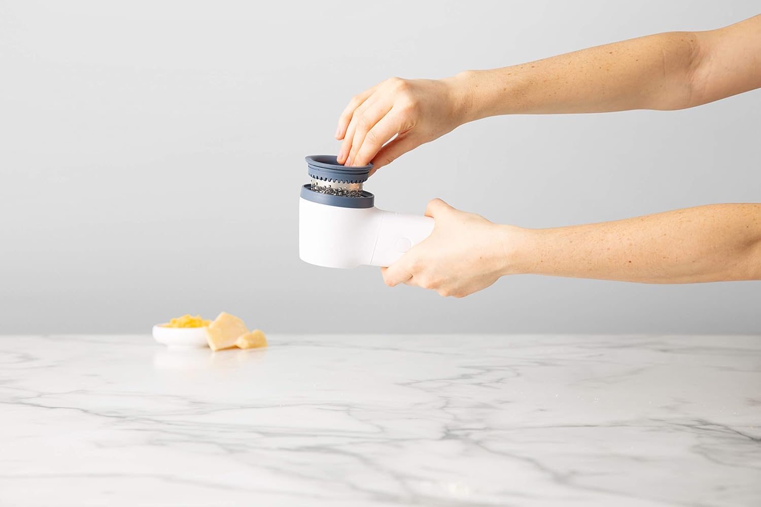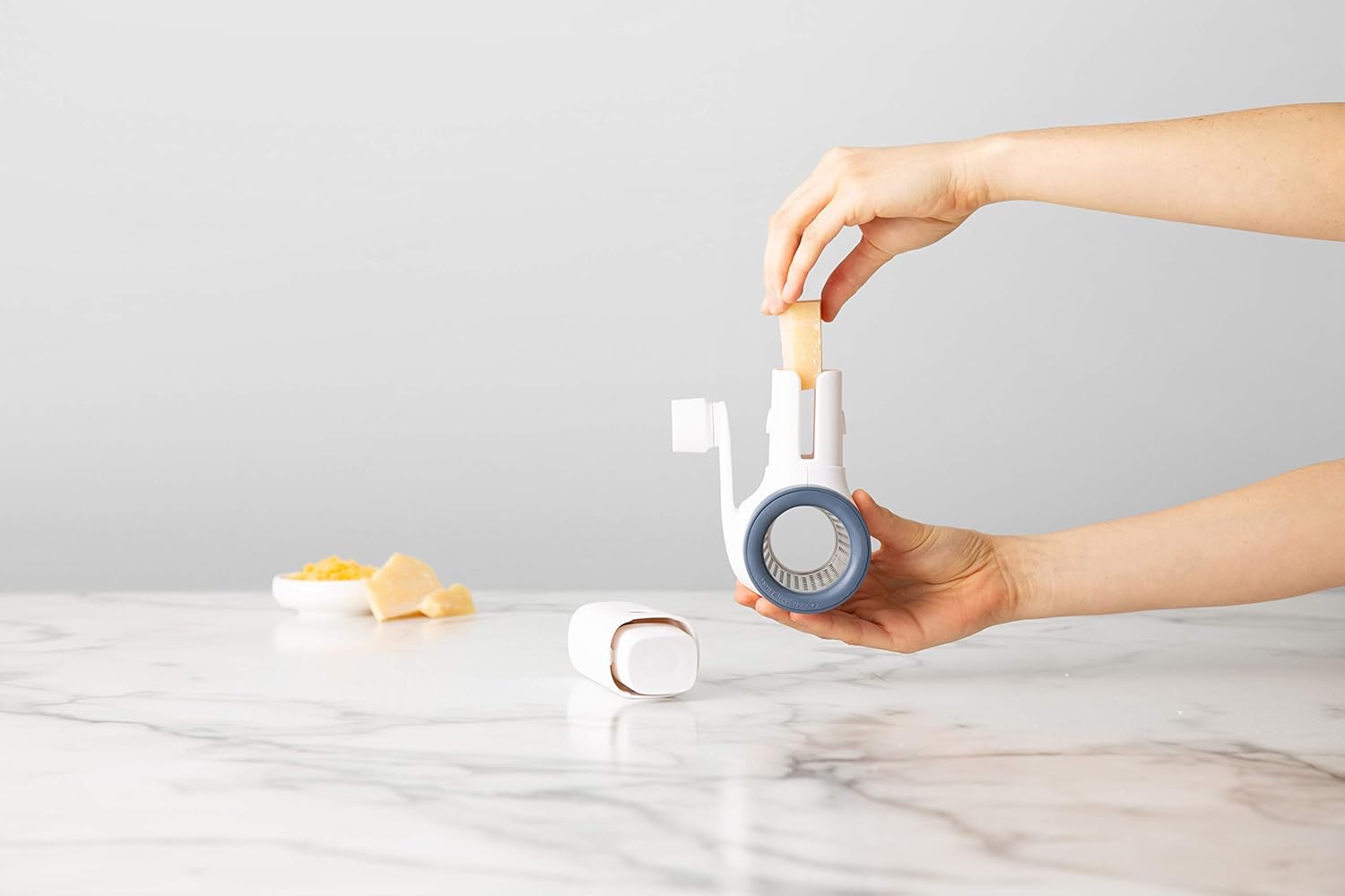 AT HOME: Low-effort, excessive output. This intelligent rotary grater has a spring-loaded chamber, so you do not have to push as you grate