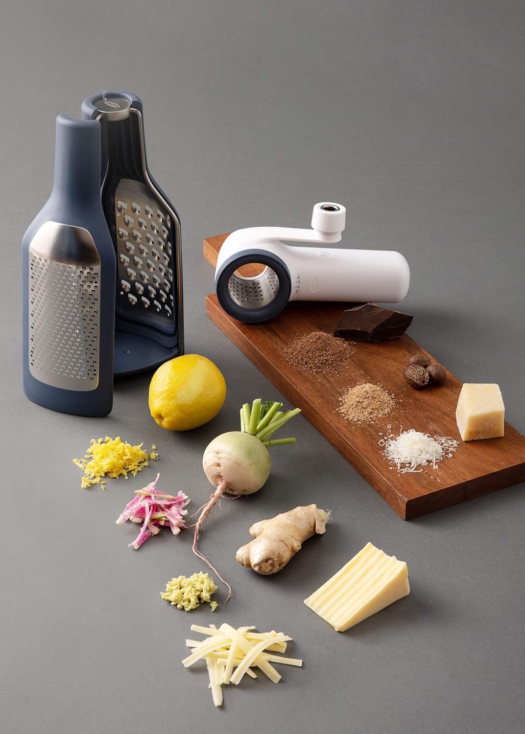 A cheese grater with a Chef’n spin on issues. Our tackle a basic software, the Chef’n Rotary Grater is designed to allow you to regulate what you are grating, and it comes aside for simple cleansing too. This intelligent rotary grater has a spring-loaded chamber, so you do not have to push as you grate. The re-imagined hand grater has open sides that allow you to see how a lot you are grating. Simply flip the geared deal with with the easy-to-grip knob, for quick and comfy grating straight over dishes. The high-quality reducing blade is sturdy and non-absorbent, with rust-resistant tooth that keep sharp. The right addition to each cheese lover’s kitchen. Items come aside for simple cleansing. Hand wash really useful for blade. Select good, easy-to-use kitchen utensils which might be constructed on tasteful design, new applied sciences, and the trusted fame of Chef’n.