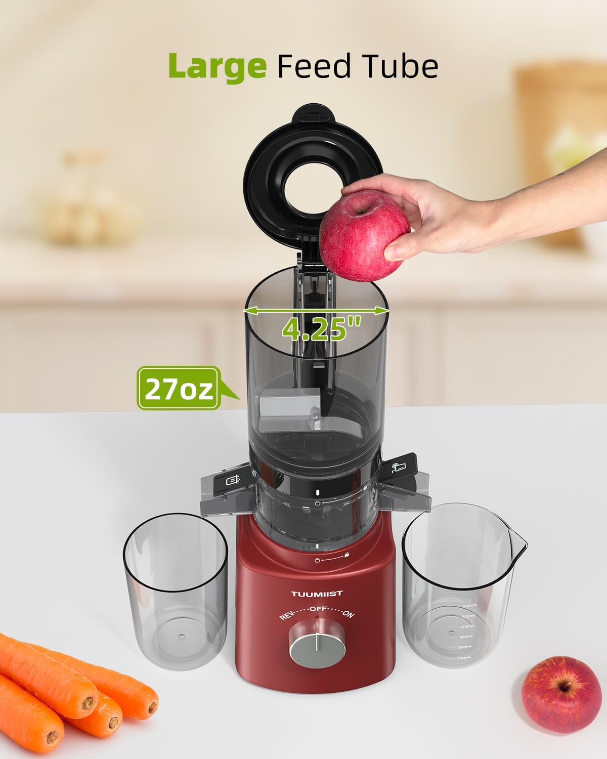 Large Feed Chute: TUUMIMIST juicer’s 4.25″ additional massive feed chute permits you to simply insert entire fruits and veggies with no prep work required, making wholesome juicing a breeze.