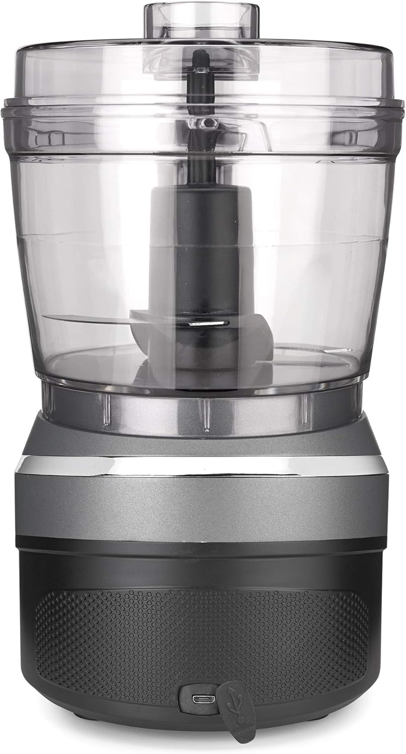 Introducing the cord-free compact chopper that maximizes highly effective efficiency and transportable comfort. Geared up with a 4-cup capability work bowl and precision chrome steel blade, this mini but mighty kitchen important makes fast work of any chopping job. It offers peak effectivity with 7.4 volts of lithium-ion energy and simply recharged with a USB twine.