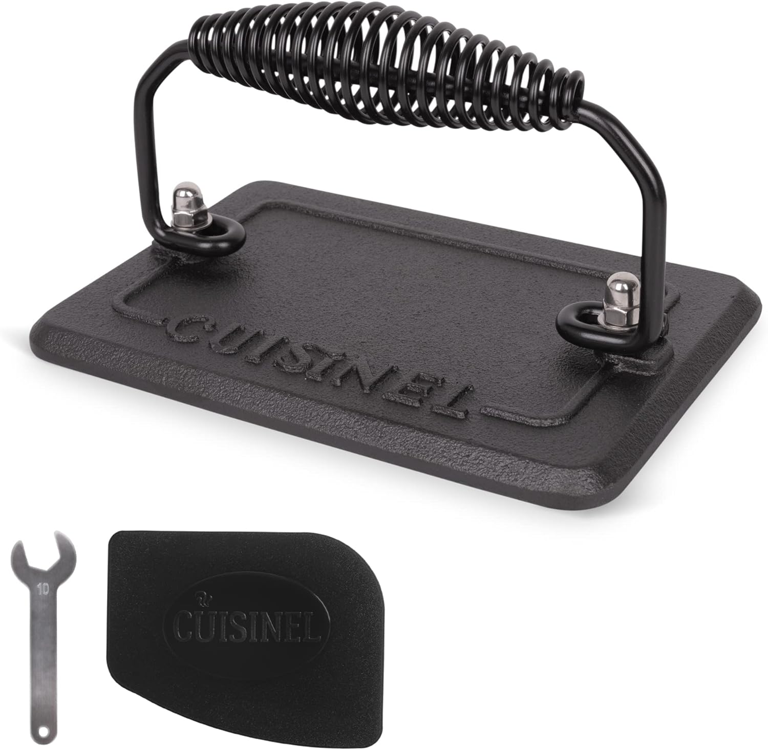 Cuisinel Grill Press – Cast Iron Burger Press for Bacon, Steak & Hamburgers – 6.75″ x 4.5″ Rectangular Pre-Seasoned 2.8-lb. Weight Sandwich Maker – Griddle, BBQ Accessory – Comfort-Grip Handle