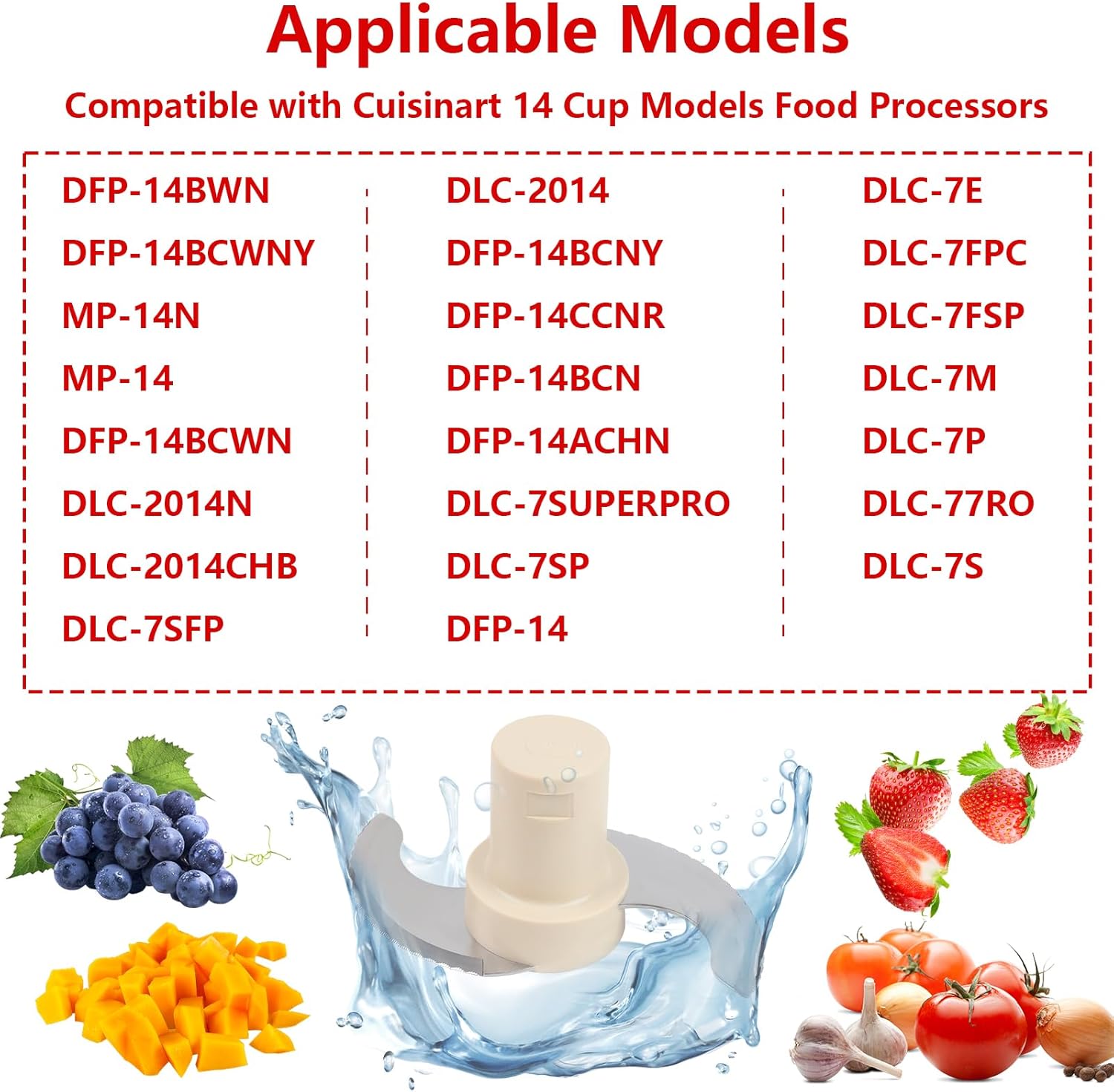 Suitable Fashions:Suitable with Cuisinart 14-cup meals processor blades substitute:DFP-14BWN, DFP-14BCWNY, MP-14N, MP-14, DFP-14BCWN, DLC-2014N, DLC-2014CHB, DLC-2014, DFP-14BCNY, DFP-14BCNR, DFP-14BCN,DFP-14BCHN, DFP-14.2014N, DLC-2014CHB, DLC-2014, DFP-14BCNY, DFP-14BCNR, DFP-14BCN, DFP-14BCN, DFP-14BCHN, DFP-14. Alternative for Cuisinart DLC-001TXA, CSR stainless-steel blade.