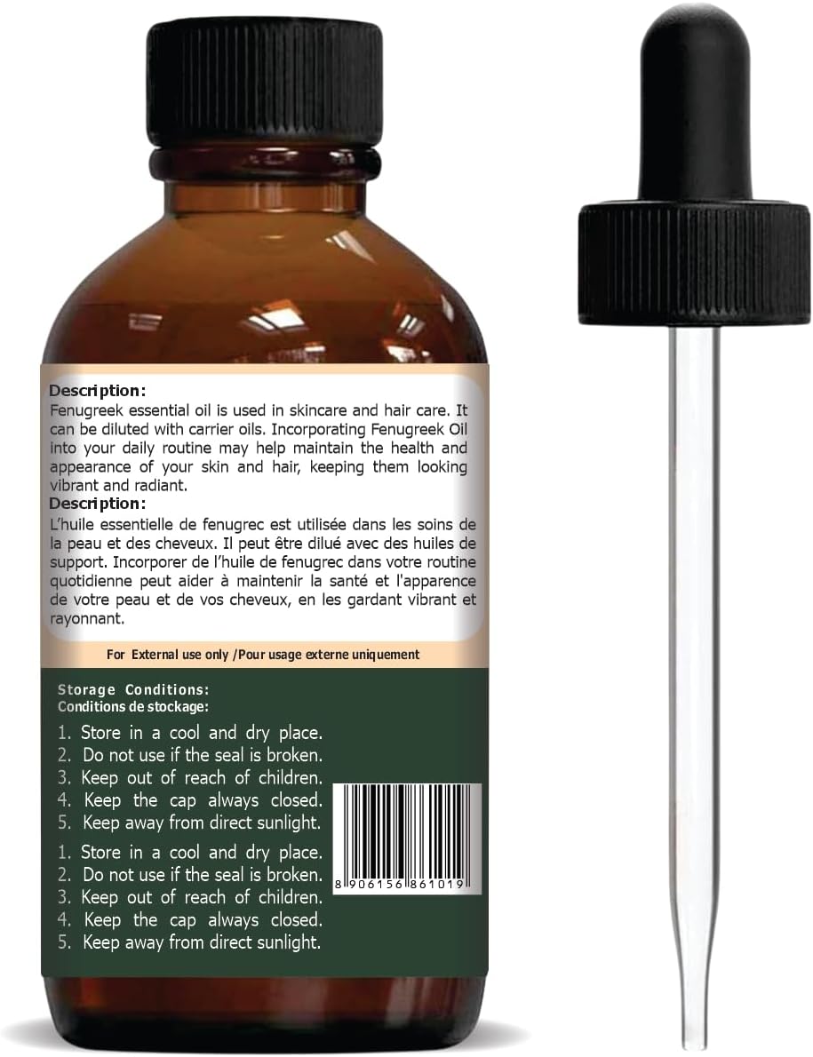 ✔USES: Fenugreek important oil is utilized in skincare and hair care. It may be diluted with provider oils.
