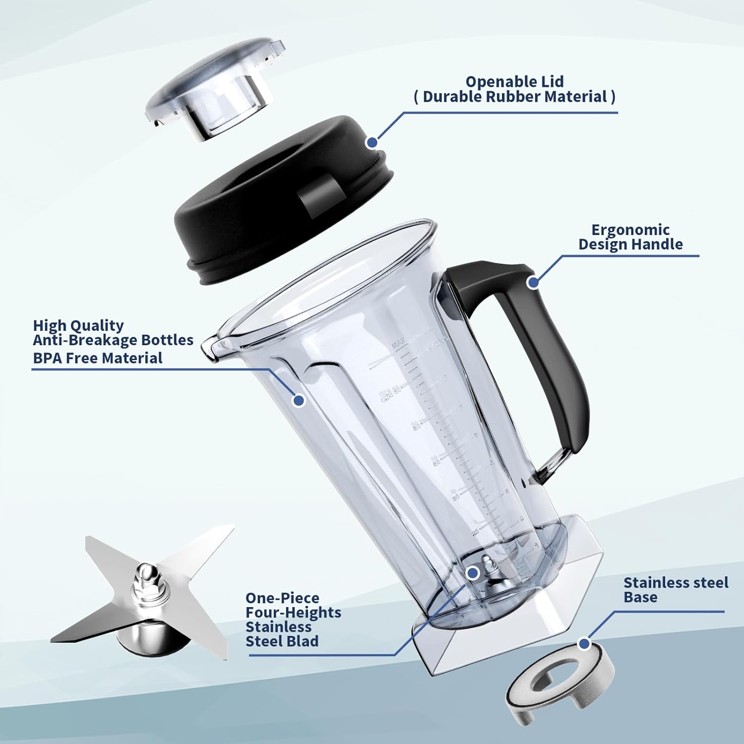 Upgraded Alternative for Vitamix Pitcher: The 64oz alternative container for Vitamix blender options 4 layers of chrome steel blades that assist speeds as much as 38,000 rpm for a fuller grind. The break up design lid lets you add meals everytime you need. The clear blender cup comes with a graduated scale, eliminating the necessity for an additional measuring cup. The comfortable ergonomic deal with is simple to grip, and the built-in design of the bottle shouldn’t be simple to leak and has a powerful seal, making it an ideal companion in your kitchen