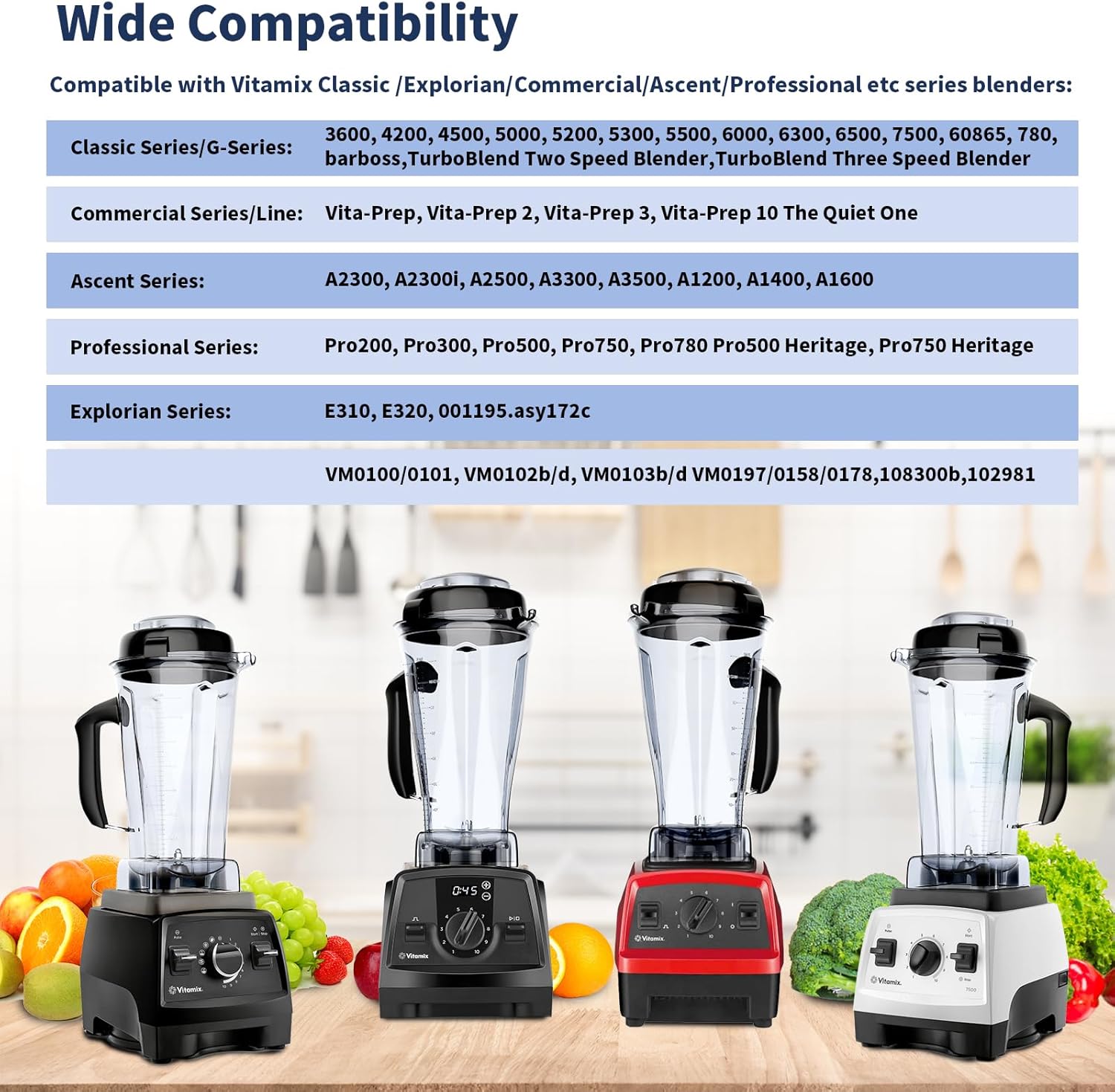 Vast Suitable: 64OZ/2L Blender Container Cup appropriate with vitamix traditional C collection blender: 4500, 5000, 5200, 5300, 6000, 6300, 6500, 7500,60865, 62828, 780; For Skilled Sequence: 200/300/500/750,780; For CreationsII Sequence: vita prep 3; For Ascent collection: A 2300/2500/3300/3500; For Explorian collection: E310/E320/E520 001195. asy172c; VM0100/0101,VM0102b/d,VM0103b/d and so forth. In case you are undecided if it is match in your blender, you possibly can inform us your blender machine mannequin.We are going to assist you verify.
