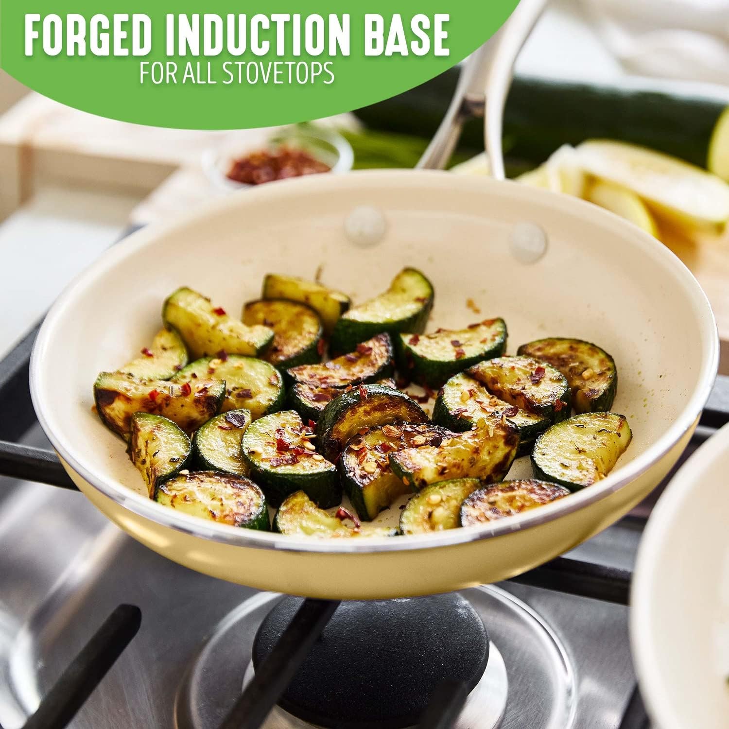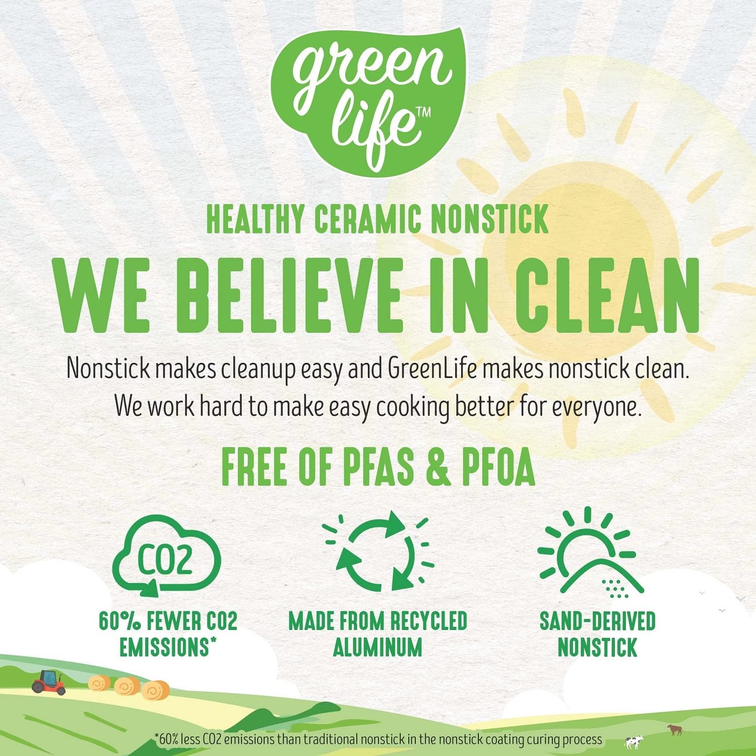 Our wholesome and easy-to-clean ceramic nonstick coating is derived from sand and freed from PFAS, PFOA, lead, and cadmium for easy cooking and fast cleanup