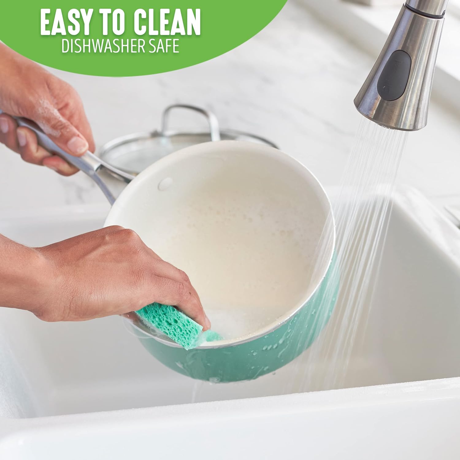 Our wholesome and easy-to-clean ceramic nonstick coating is derived from sand and freed from PFAS for easy cooking and fast cleanup