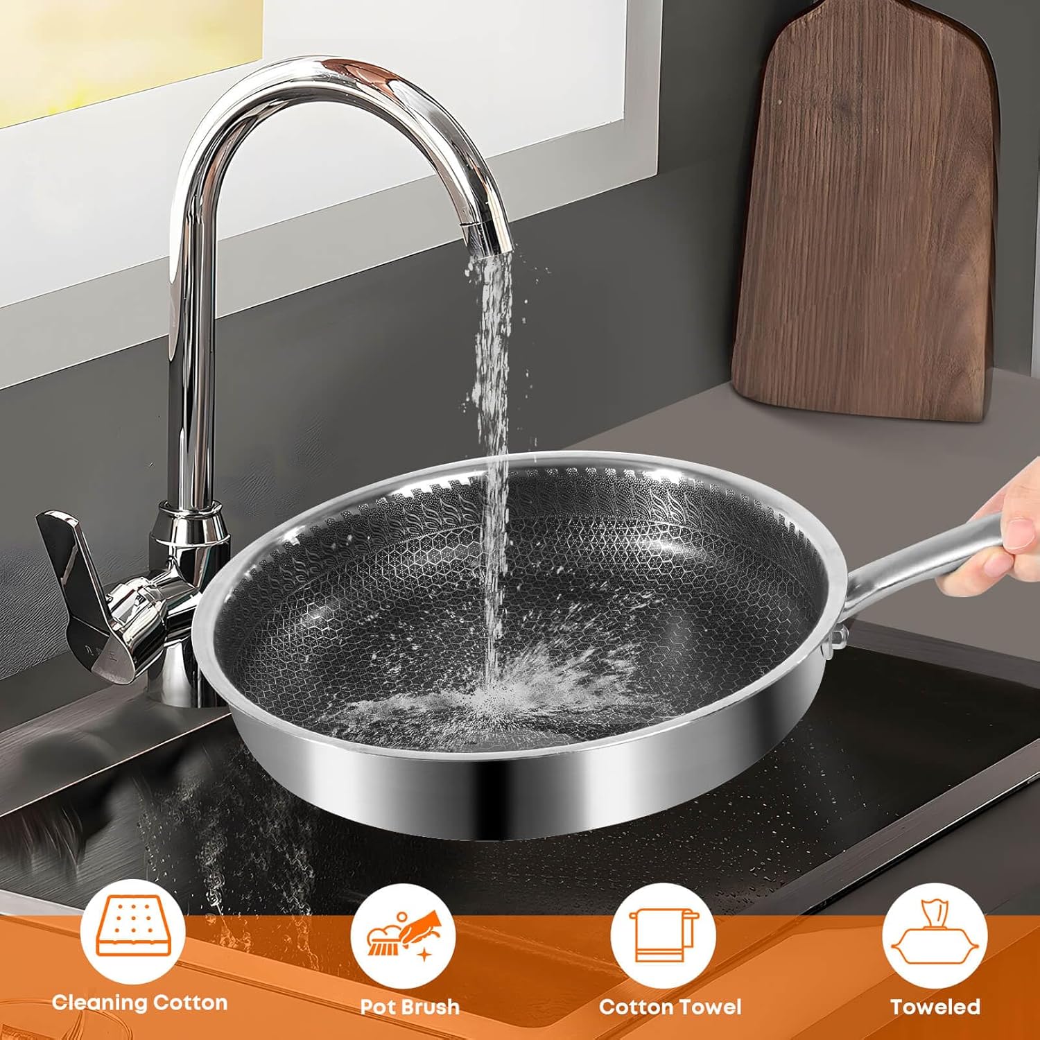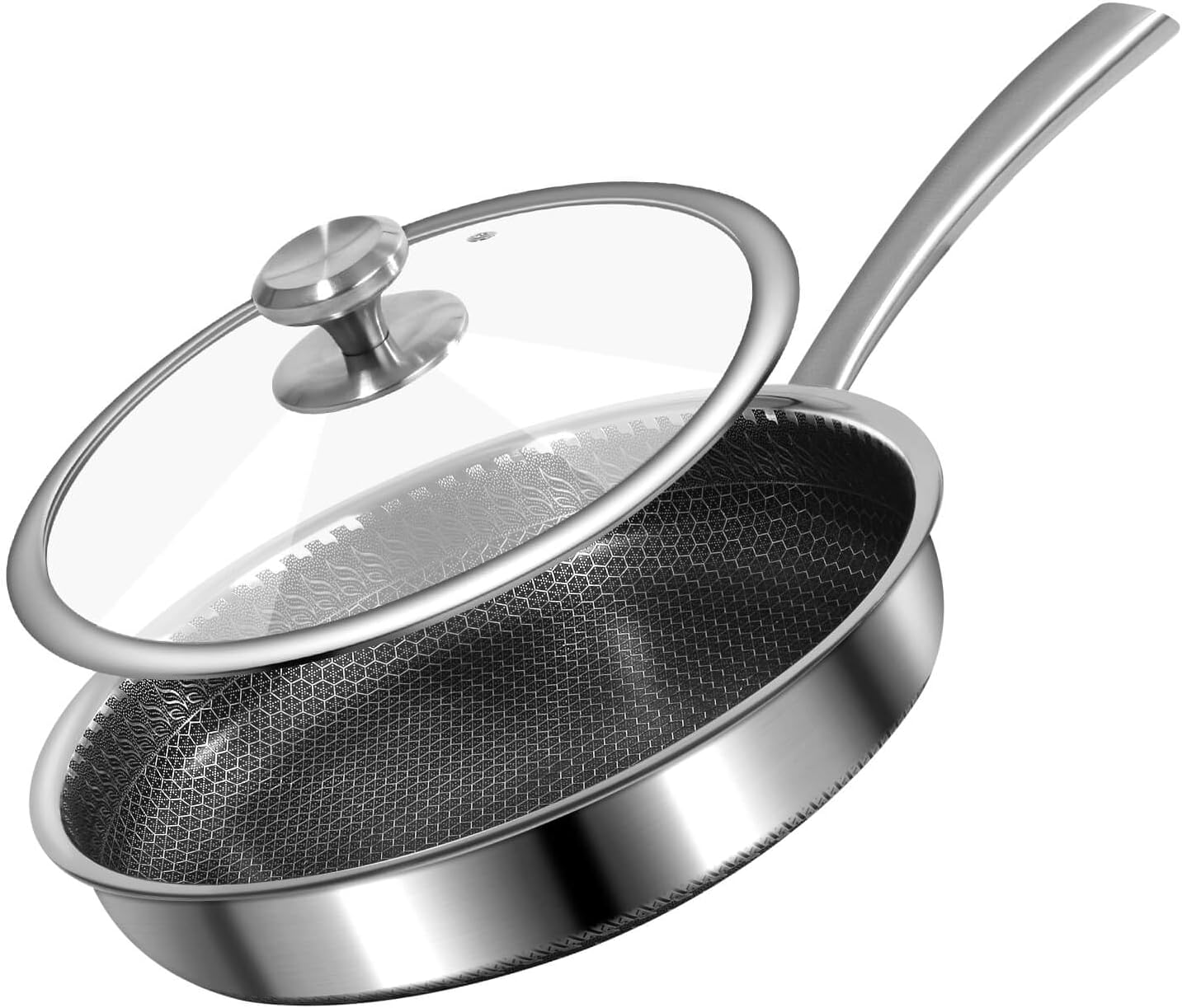 ✅【Humanized design】The stainless-steel honeycomb sample varieties a surprising and sturdy scratch- resistant floor, metallic utensils protected, cut back the technology of oil smoke on the similar time, extraordinarily appropriate for intensive use.