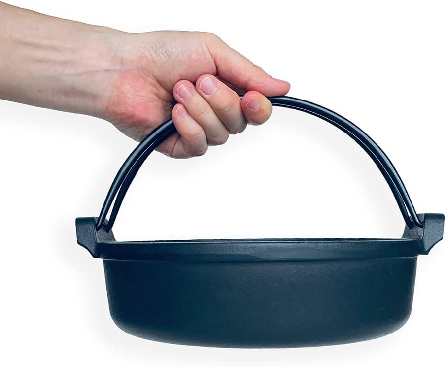 This Japanese Solid Iron Sukiyaki Pan is made in Japan. For over 100 years, Iwachu has been producing Nambu Tekki (Nanbu Ironware), a conventional craftwork of forged iron. The Iwachu kitchenware with a sublime casting floor is an ideal product that mixes performance and design. This pot is sturdy and won’t bend or scratch with many makes use of. The pan is nice for cooking dishes like sukiyaki, paella, and stew dishes. It’s induction range protected and gasoline range protected. It’s not microwave or dishwasher-safe. To forestall rust, a baking end is utilized. Don’t use metallic spatulas, scrubbing brushes, or the rest that might scratch the floor the place the baking end is utilized. The product measures 8.66 x 7.46 x 2.56 inches and weighs 3.47 kilos.