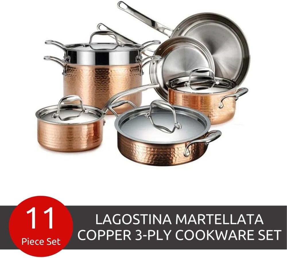 The Martellata Hammered Copper 11 Laptop. Set is impressed by generations of passionate Italian cooking. With a fantastic hammered copper exterior and a stainless-steel inside pans look beautiful within the kitchen and on the desk. The tri-ply stainless building offers even warmth all through your entire pan whereas the copper exterior heats and cools quickly–great for quick boiling or making delicate sauces. Topped with polished chrome steel lids and riveted handles, these pans look nice and are constructed to final for a lifetime of memorable meals. Pans are oven and broiler secure for versatile cooking. The set consists of all the fundamental pans you want to prepare dinner a scrumptious meal for a crowd: 8” skillet, 10” skillet, 2 Qt. Saucepan with lid, 3 Qt. Saucepan with lid, 3 Qt. Deep sauté with lid, 6 Qt. pastaiola with lid.