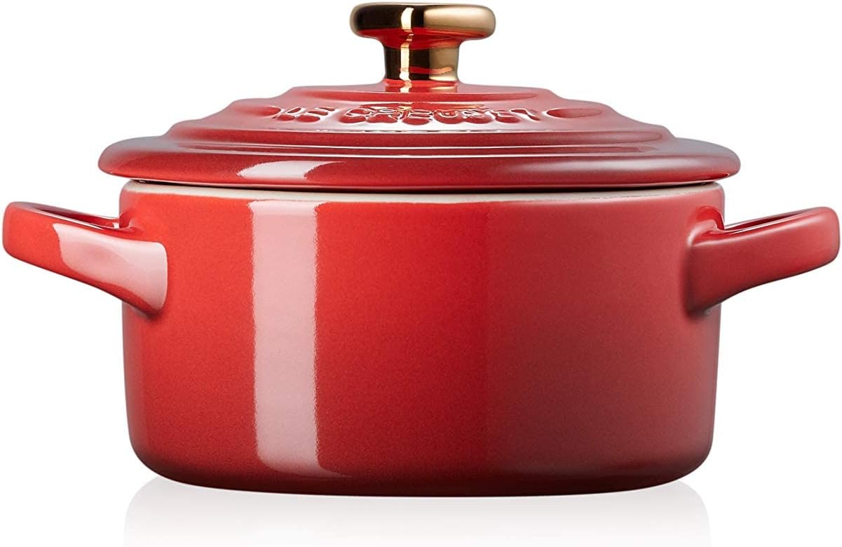 Mini spherical cocotte manufactured from stoneware with an enamel end