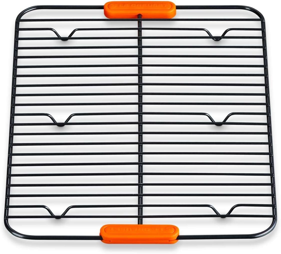 Le Creuset Cooling Rack Nonstick, Barely elevated with sturdy rack toes, Permits for air circulation, Adorning truffles with precision, Pastries don’t soften in the course of the cooling course of, Sturdy heavy-gauge carbon metal, Anti-warp, metallic, Straightforward to make use of and clear: Non-stick coating, Straightforward meals launch, Safe-hold silicone inserts for added grip, Straightforward handwash, Contents: 1x Le Creuset Cooling Rack Nonstick, 1 x Care; Use Booklet, Materials: Carbon Metal, Black, 46601000010000