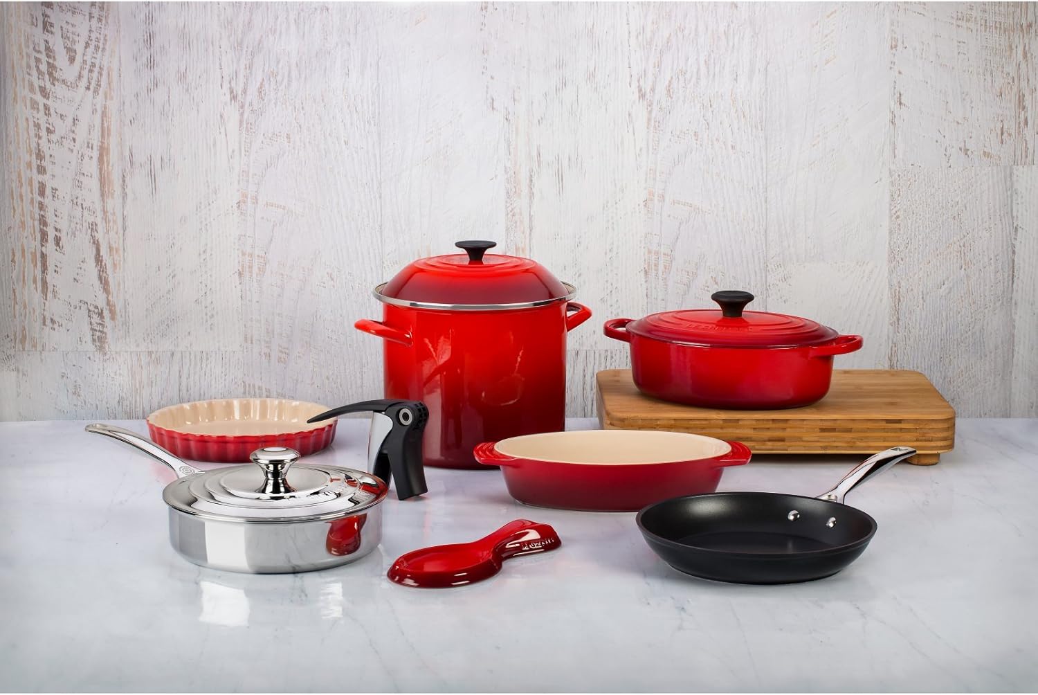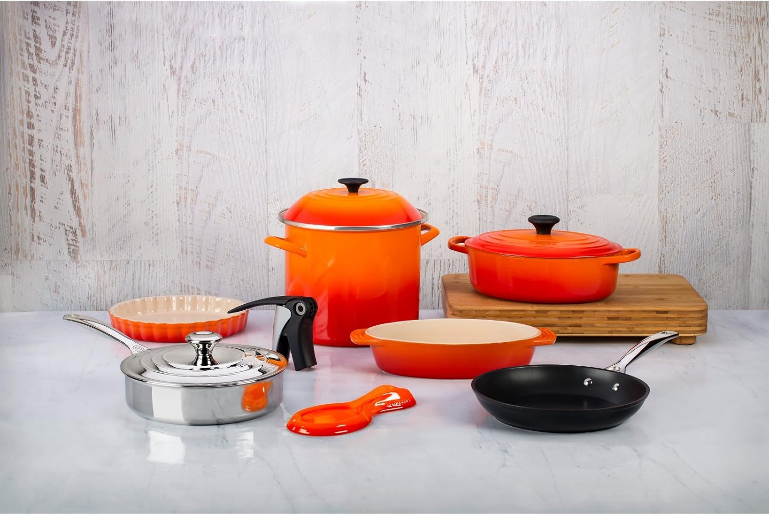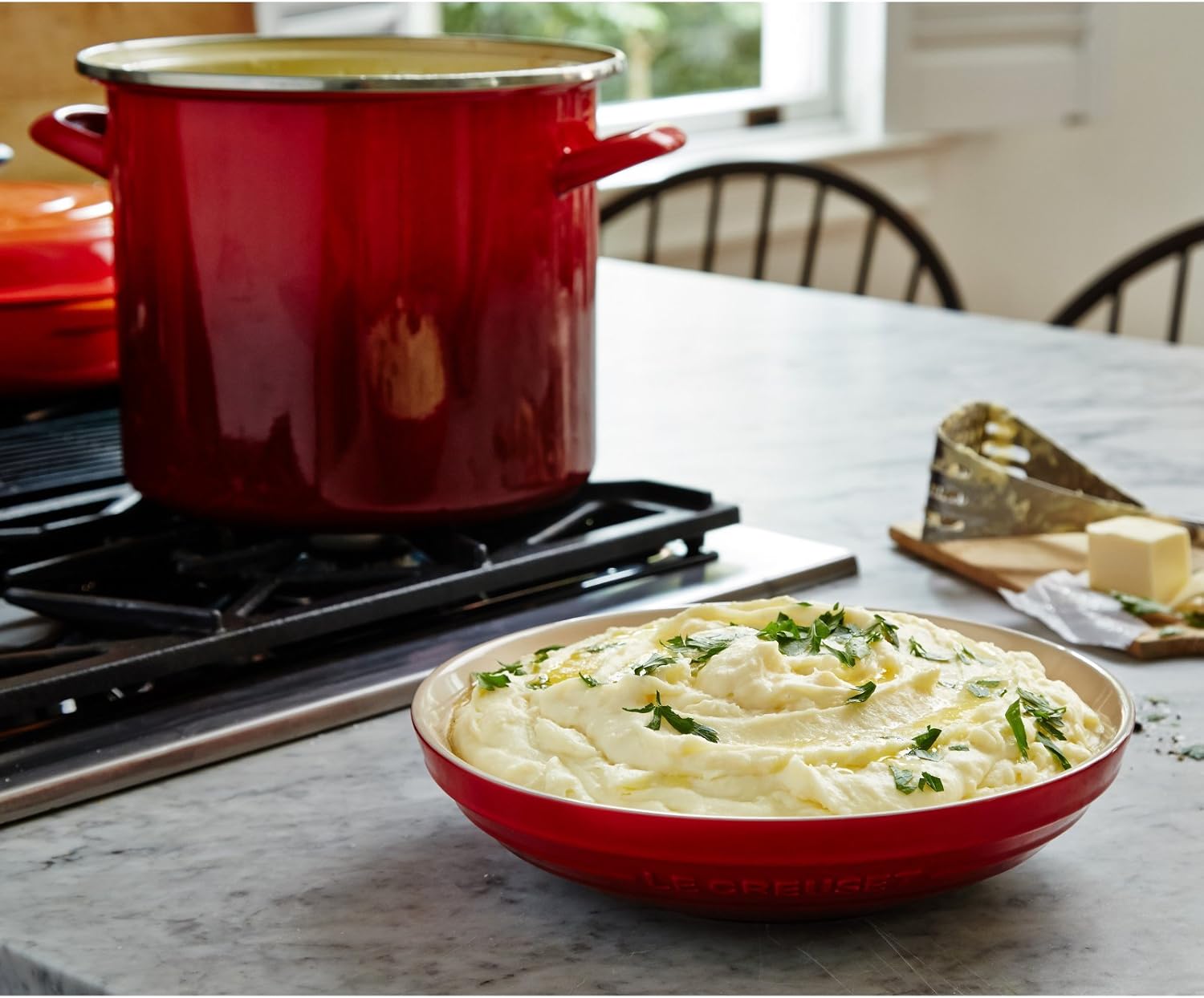 Designed to perform effectively on a full vary of warmth sources, enamel on metal stockpots aren’t solely immune to put on and harm, but additionally versatile sufficient for any sort of stovetop, previous or new. Their high-profile design limits evaporation whereas forcing liquids to bubble by all layers of substances, infusing your complete dish with taste throughout cooking. Le Creuset enamel on metal stockpots are completed in the identical daring palette of signature colours as Le Creuset enameled forged iron, making them completely fashionable enhances to any mixture of cookware.