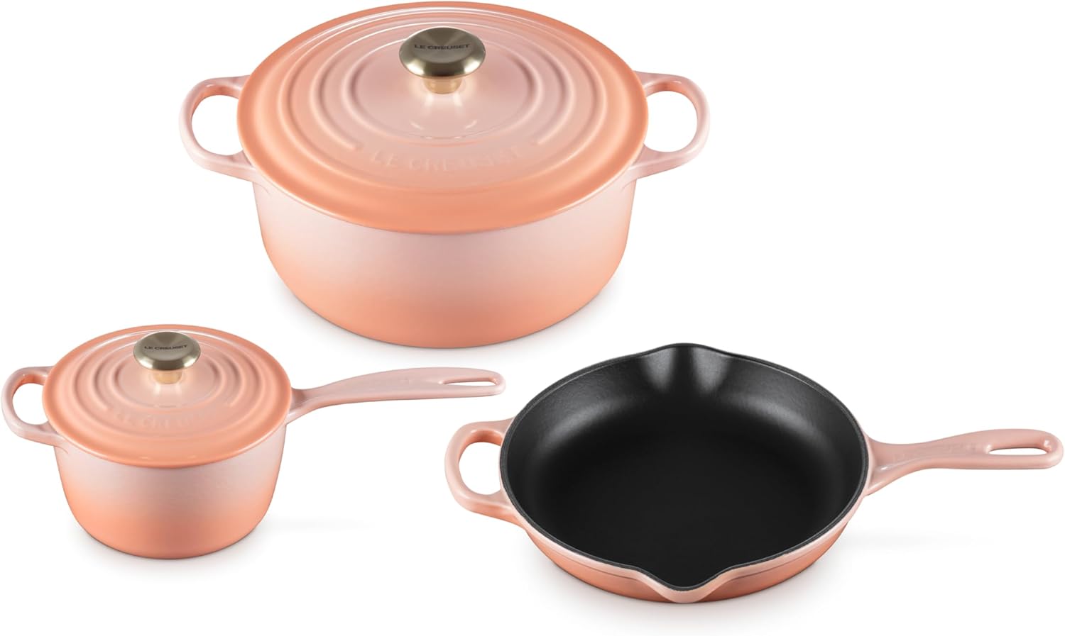 The Signature Enameled Solid Iron 5-Piece Cookware Set options our greatest promoting enameled forged iron pots and pans, together with our iconic Dutch oven and highly-rated signature skillet. Whether or not simply beginning to construct your Le Creuset assortment or including to an present assortment, this set is the right place to start out. It additionally makes an distinctive reward for weddings, showers, housewarming and for the one that likes to cook dinner and entertain.