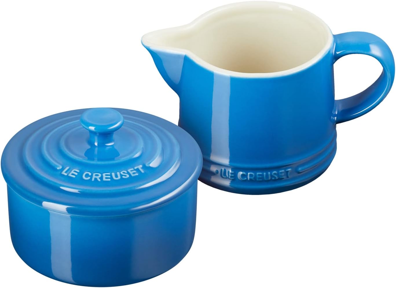 Sweeten espresso and tea time with the Le Creuset Cream and Sugar set. The cream pitcher’s precision-pour spout ensures drip-free pouring, and the sugar bowl retains sugar and sweeteners helpful. Crafted from premium stoneware in our iconic colours, the cream and sugar set is completed with a vibrant glaze which is simple to wash, dishwasher-safe, and immune to chips, scratches and stains.