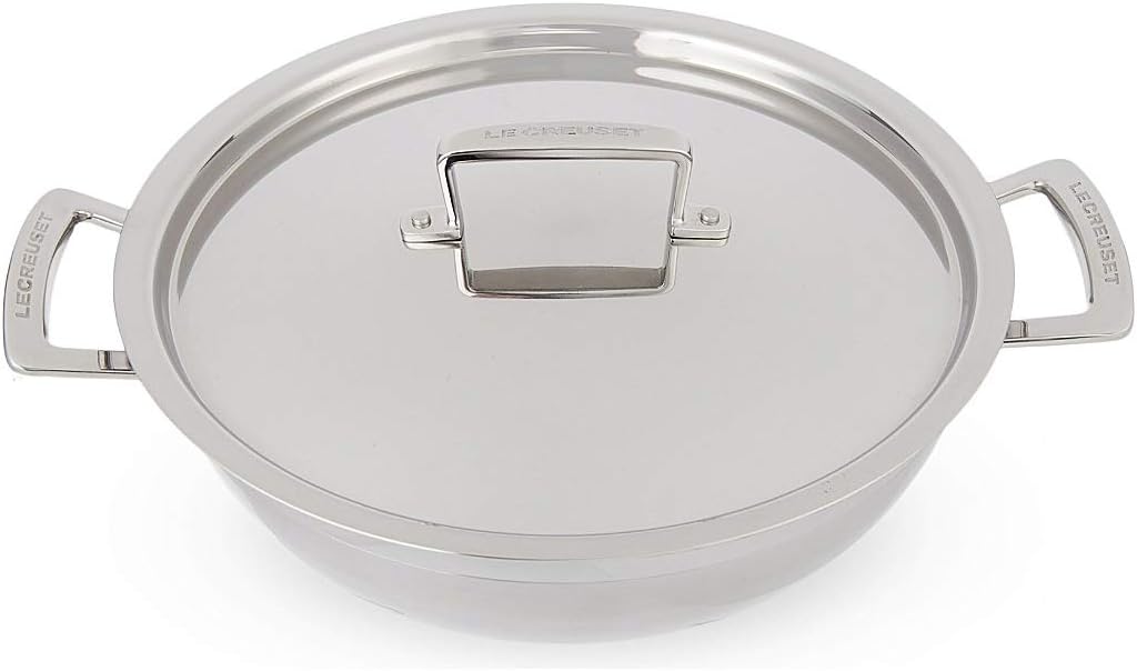 Le Creuset of America 5 Qt. Braiser PanThis giant capability braiser pan works nicely on any cooking floor, and within the oven too. The tight becoming lid helps seal in meals pure juices, and the chrome steel development distributes warmth evenly, with out scorching spots.Materials: Brushed Stainless Metal Precision Pour Rim Riveted Handles Consists of Stockpot and Insert Even Warmth Distribution Dishwasher Secure Capability: 5 Qt Diameter: 11-3/4″ Peak: 3″ Weight: 6.5 lbs Ship Weight: 7 lbs Lifetime Guarantee Mannequin: SS8100-30 850076