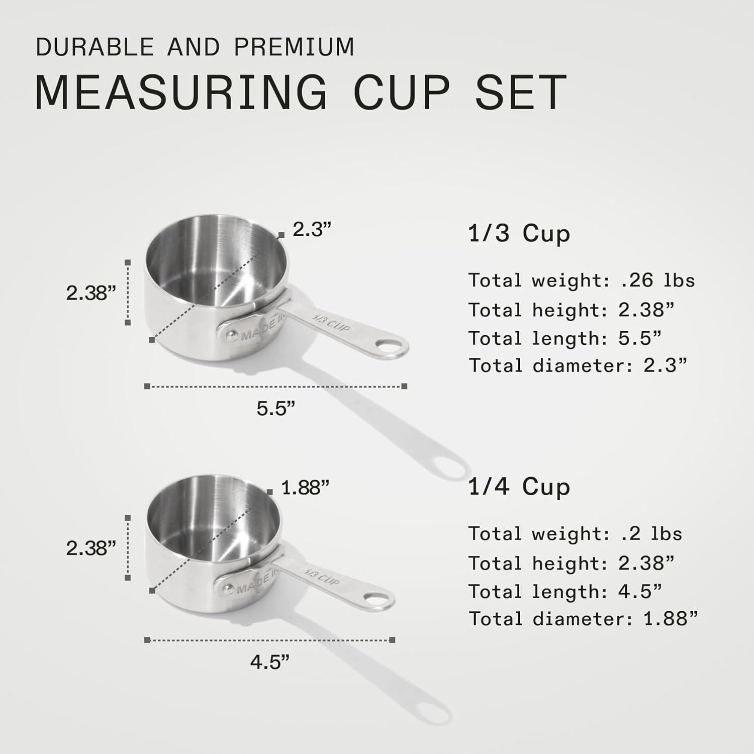 Consists of: ¼, ⅓, ½ and 1 Cup Sizes