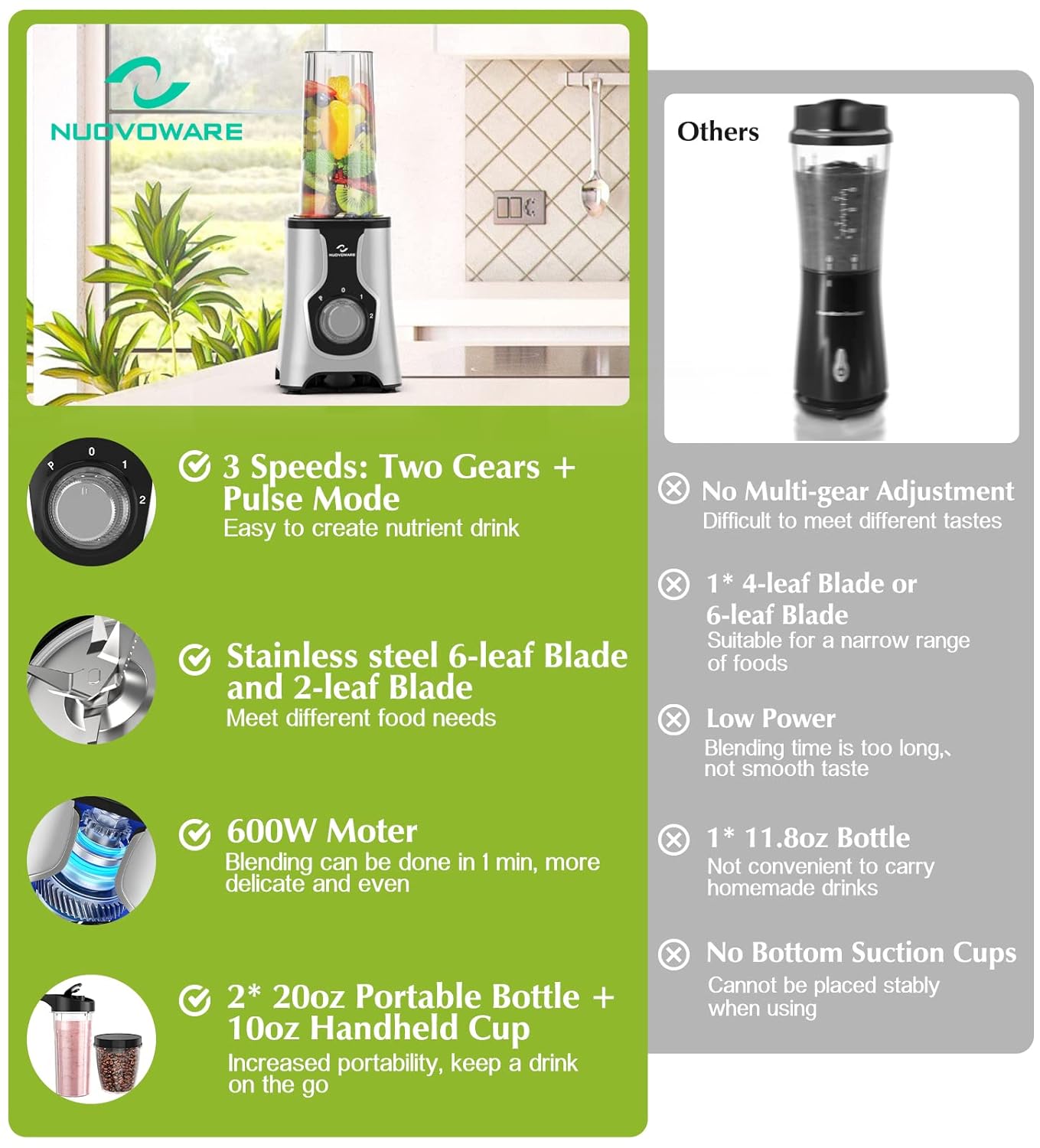 Highly effective and Efficient: Smoothie blender with 600 watts tremendous highly effective motor, and 22000 high-speed operations, there are 3 sorts of velocity adjustable, and inside 15- 20 seconds you may crush greens, make milkshakes, and smoothies, and blend protein powder drinks, and so forth., successfully serving to you save time and get balanced diet. Ideas: It is suggested that after 5-10 minutes of product use, let the machine relaxation for 10-Quarter-hour so as to lengthen the lifetime of blades.