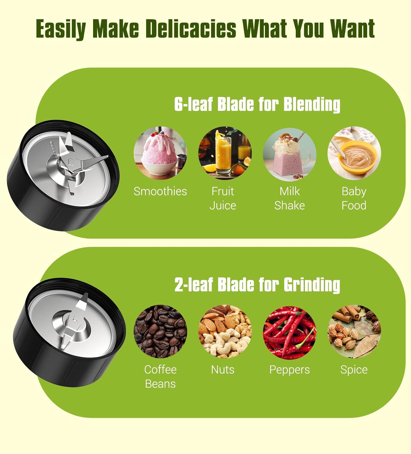 2 Stainless Metal Blades: The bullet blender for shakes and smoothies is designed with a 6-leaf blade and a 2-leaf blade for making fruit shakes, vegetable juices, smoothies, grinding nuts, espresso beans, and so forth., serving to you flip laborious meals into delicately flavored delicacies. Mixing, mixing, and grinding multifunctional in a single, to satisfy the totally different wants of the household.