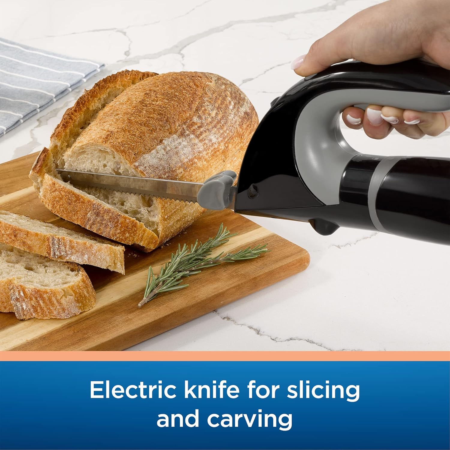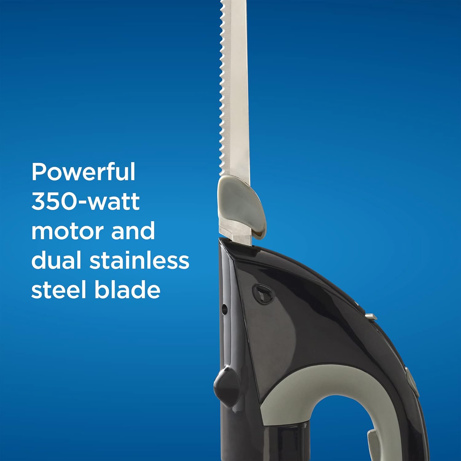 Electrical knife attachment transforms into a robust slicing/carving knife; Designed with a robust 350-watt motor and twin chrome steel blade for sturdiness