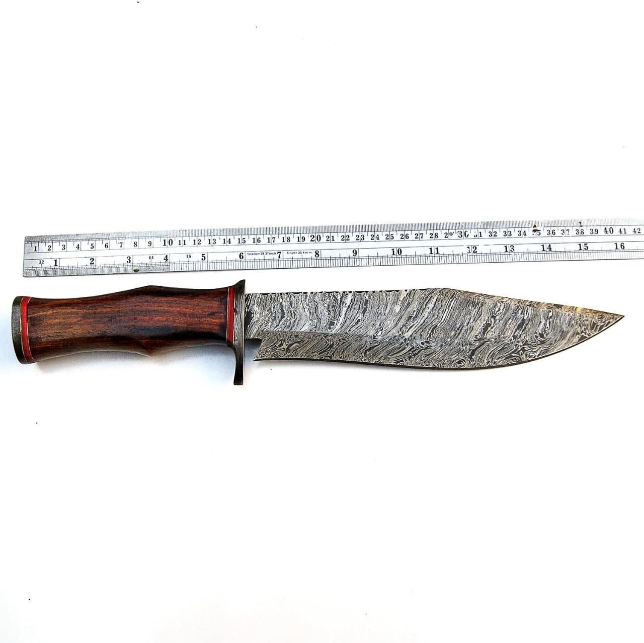 Customized Made, Hand Solid Damascus Metal Blade Looking Knife With Sheath Totally Purposeful, Sharp Edge, Excellent Grip, Balanced, High quality. MEASUREMENT Whole size: 15 Inch Blade Size: 9 Inches Deal with Size: 6 Inches Deal with Materials: Stunning Rose Wooden With Superb artwork on it Handmade Sturdy Leather-based Sheath Included DAMASCUS STEELMAKING: Our Damascus article is a Double-edged blade in order that it suits each left-handed and right-handed individuals. The blade is folded 5 occasions ranging from 11 layers Of 1095 and 15N20 giving roughly 352 Layers on this superior Sample. WILL NOT RUST WITH PROPER CARE: Your article will final you for years with the correct care. Hold it dry, oil the article blade when not utilizing for a very long time. vegetable oil or any lubricant Oil after washing. Don’t put the Knife into the Sheath to retailer for a Very long time with out oil. BEST FOR CUTTING – SLICING – MINCING DICING: our articles can simply deal with your each day kitchen duties – designed for slicing, slicing – mincing, and dicing of fruit – greens, and meat. The basic look, ergonomic deal with, and ease-of-use design that you’ll come to rely on it.We Are Making All Kind of knives, like, knife BUYING: You should be sure18+ of age and you may legally buy and personal an Article and can use it responsibly. Our articles have been constructed with Perfection in Thoughts. Best Multipurpose Cutlery Present Christmas, Weddings, Birthdays, for House Cooks, Skilled Chef’s, Culinary College students, and extra. Nice piece of artwork for an ideal reward knife in addition to absolutely purposeful.