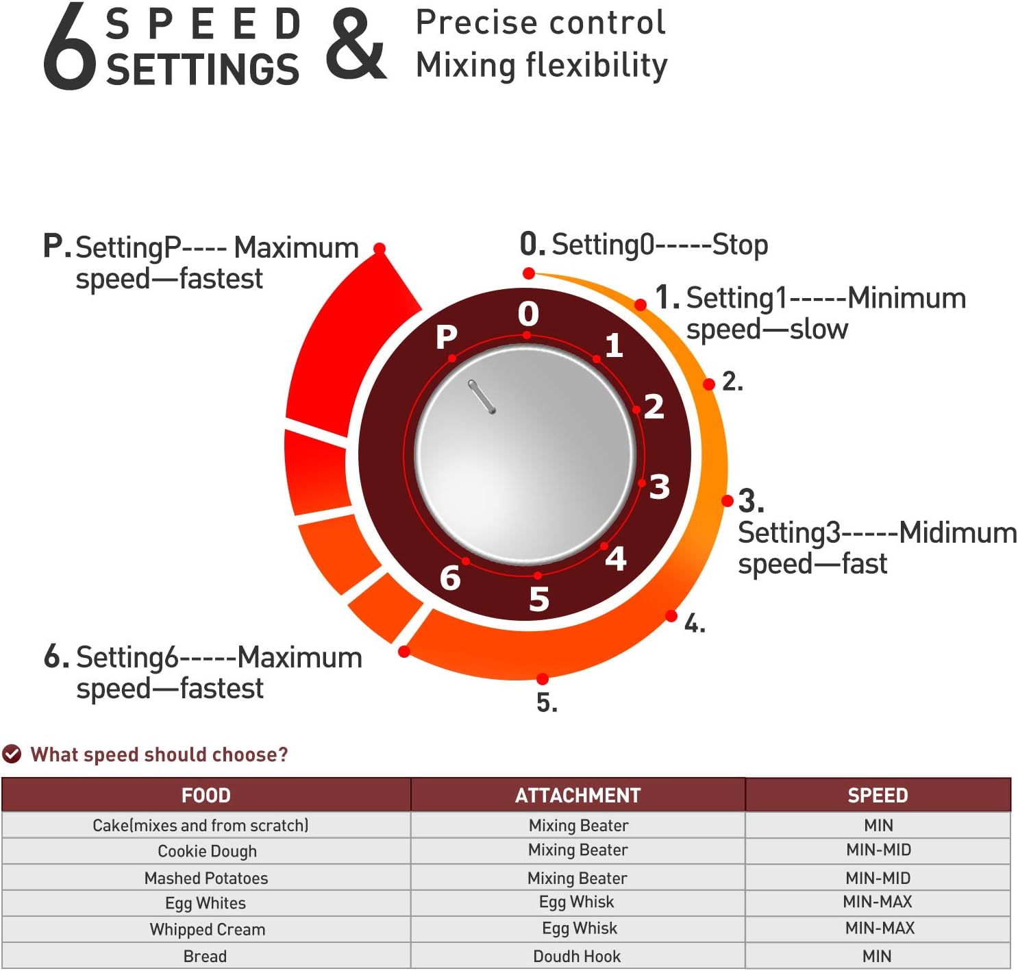 【🍰POWERFUL MOTOR】400W excessive efficiency pure copper motor drives steel gears to make the blending course of shortly and totally. With helpful 6-Pace management and a pulse operate, entry to multipurpose and a wide range of recipes.