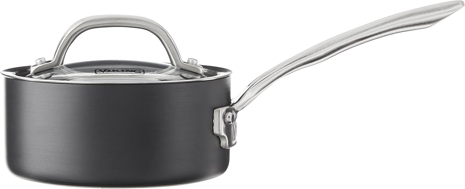 Expertise even warmth and distinctive launch with Viking Laborious Anodized Nonstick Cookware. Constructed with heavy gauge anodized aluminum for sturdiness and even warmth distribution all through the perimeters and backside of the pan, Viking Laborious Anodized Cookware options a chrome steel base making it exceptionally steady and appropriate with all cooktops (excluding induction). Accepted worldwide as one of the crucial conductive metals for cooking, the aluminum is strengthened by the anodizing course of till it’s twice as laborious as stainless-steel. That includes nonstick, every bit is coated with three layers of sturdy nonstick coating to make sure most launch and longevity, even when utilizing metallic utensils. The multi-layer coating improves launch and safety even when the highest layer is scratched over time. The fry pans function flared rims for straightforward tossing and drip-free pouring, whereas the sauce pans, saute and Dutch oven function lower rims to reinforce the lid match, serving to maintain moisture and vitamins contained in the pan throughout cooking. NOT INDUCTION COMPATIBLE.