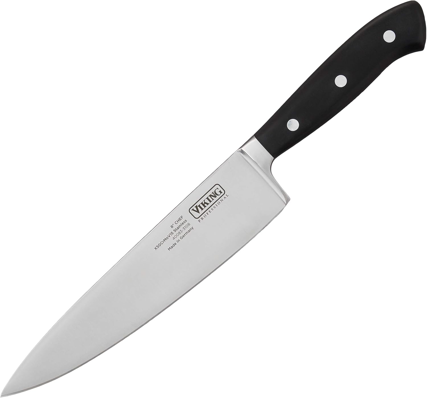 Designed in Germany, Viking Culinary Skilled Chef’s Knife delivers uncompromising efficiency because of the distinctive stability between the blade and deal with. This absolutely solid knife is constructed with an built-in tang and riveted POM deal with. Solid from high-alloy metal to make sure sharpness, ship edge retention and resist corrosion, Viking Skilled Cutlery options sturdy German stainless-steel with a Rockwell hardness score of 55-56. Designed for each residence {and professional} use, this knife was created with the calls for of knowledgeable chef in thoughts. The ergonomically designed deal with was developed with a concentrate on consolation and ease of use that includes distinctive stability in order that they’re as ergonomic as attainable. With little to no weight on the upward carry, Viking Culinary Skilled Cutlery is designed to be an extension of the hand and remove fatigue. The blades characteristic a 15-degree innovative that’s warmth hardened beneath inert fuel to make sure energy and lengthy life. The mixture of the innovative angle and the Rockwell hardness of the metal create the right stability between edge retention and the power to sharpen the blade. Viking Culinary Skilled Cutlery is totally hygienic with no gaps between the blade and deal with. The bolster and built-in tang ship stability and stability whereas defending the customers hand from the blade. The Viking Culinary Skilled Cutlery line is backed by a lifetime . Viking merchandise started with a ardour for cooking. Viking Culinary provides a full assortment of culinary merchandise that ship on the Viking promise of Skilled Efficiency for Your Dwelling. You Know our Kitchens; Now Uncover our Cookware.