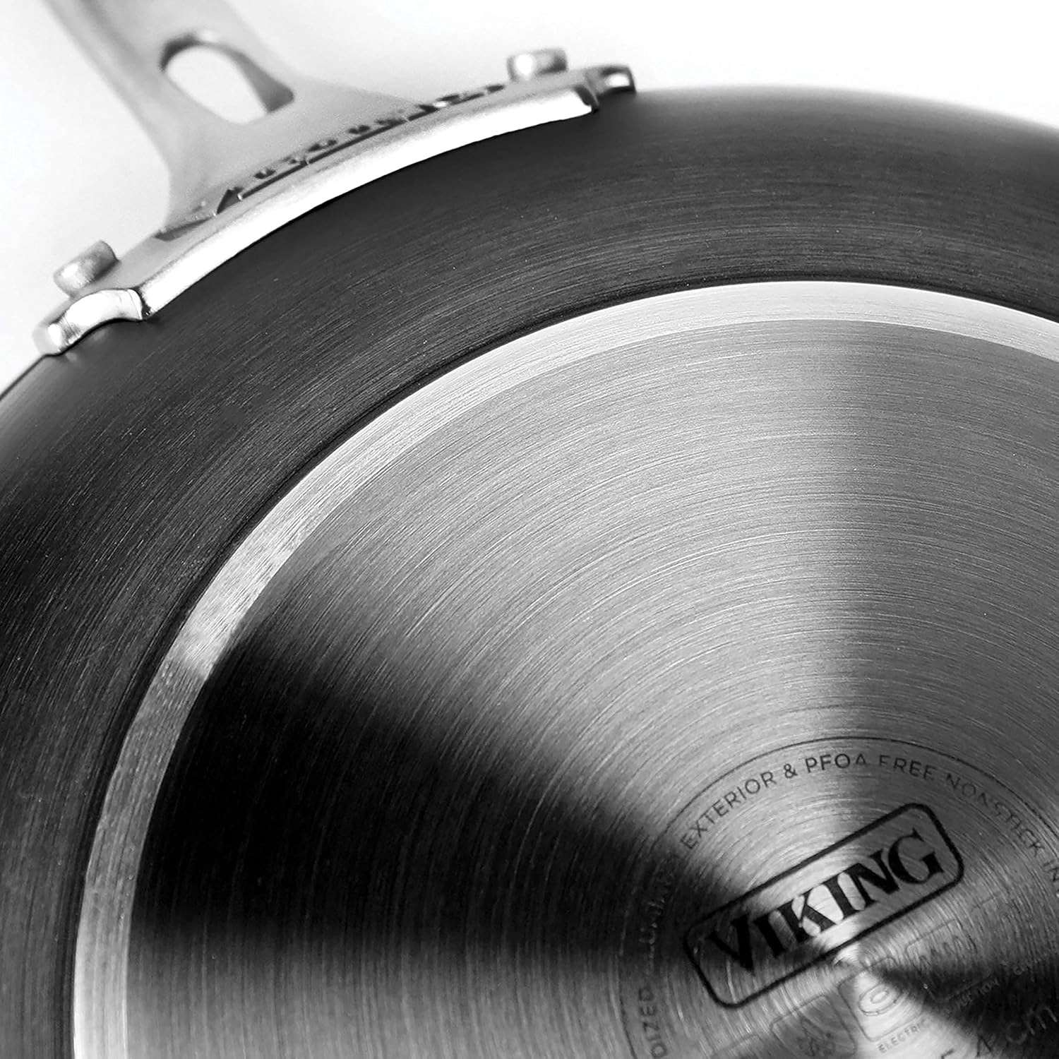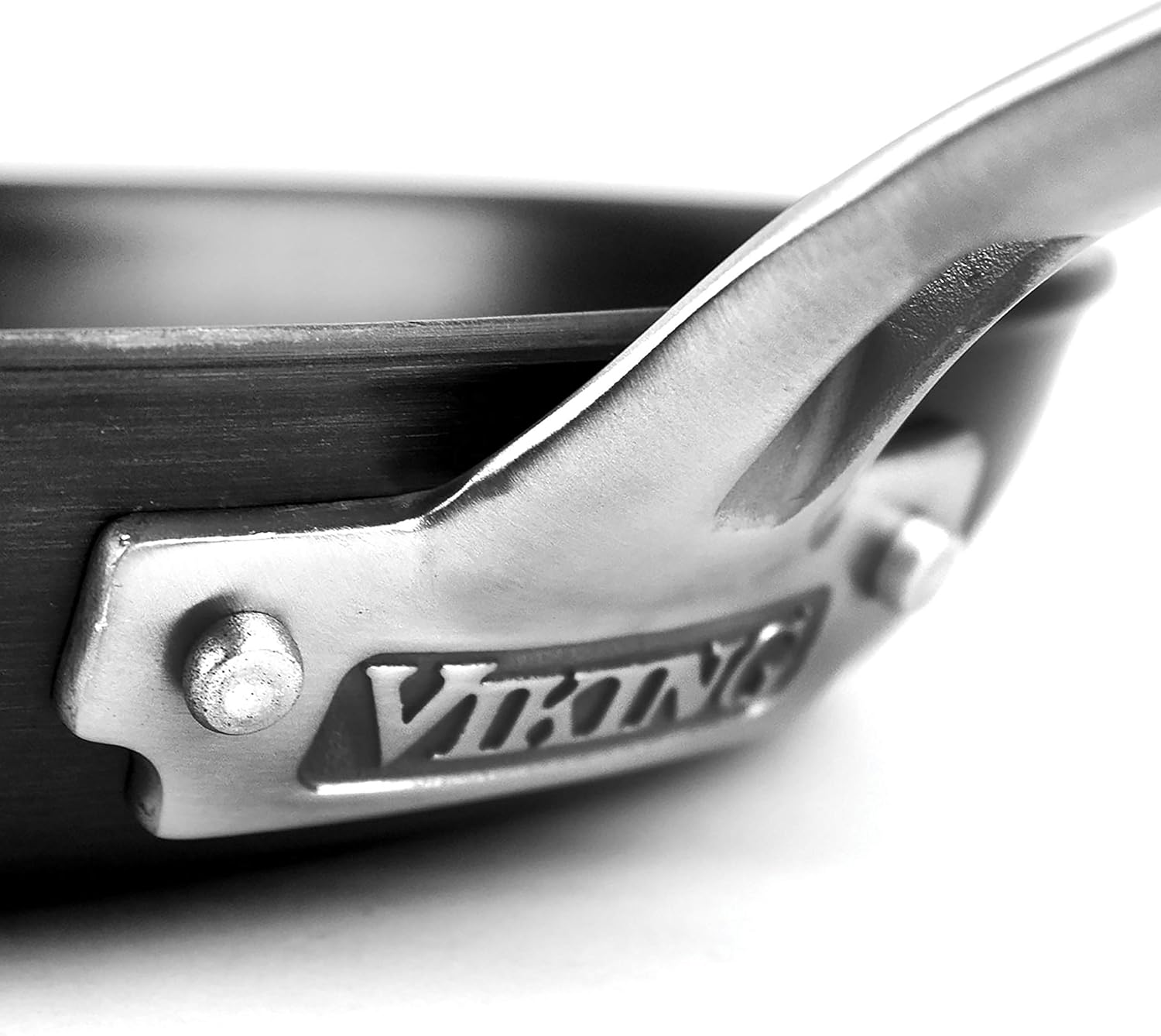 Viking Exhausting Anodized Nonstick Skillets are good for making ready eggs and omelets in addition to searing steaks, sauteing greens or browning potatoes and extra. Expertise even warmth and distinctive launch with Viking Exhausting Anodized Nonstick Cookware. Constructed with heavy gauge anodized aluminum for sturdiness and even warmth distribution all through the perimeters and backside of the pan, Viking Exhausting Anodized Cookware encompasses a magnetic chrome steel base making it exceptionally secure and suitable with all cooktops together with induction. Accepted worldwide as one of the crucial conductive metals for cooking, the aluminum is strengthened by the anodizing course of till it’s twice as exhausting as chrome steel. That includes PFOA-free nonstick, coated with three layers of sturdy nonstick coating to make sure most launch and longevity, even when utilizing metallic utensils. The multi-layer coating improves launch and safety even when the highest layer is scratched over time. Designed with ergonomics in thoughts, Viking signature handles are hand crafted from forged chrome steel and riveted to the pan for a lifetime of sturdiness. Viking Exhausting Anodized Nonstick cookware is dishwasher secure and backed by a restricted lifetime guarantee.