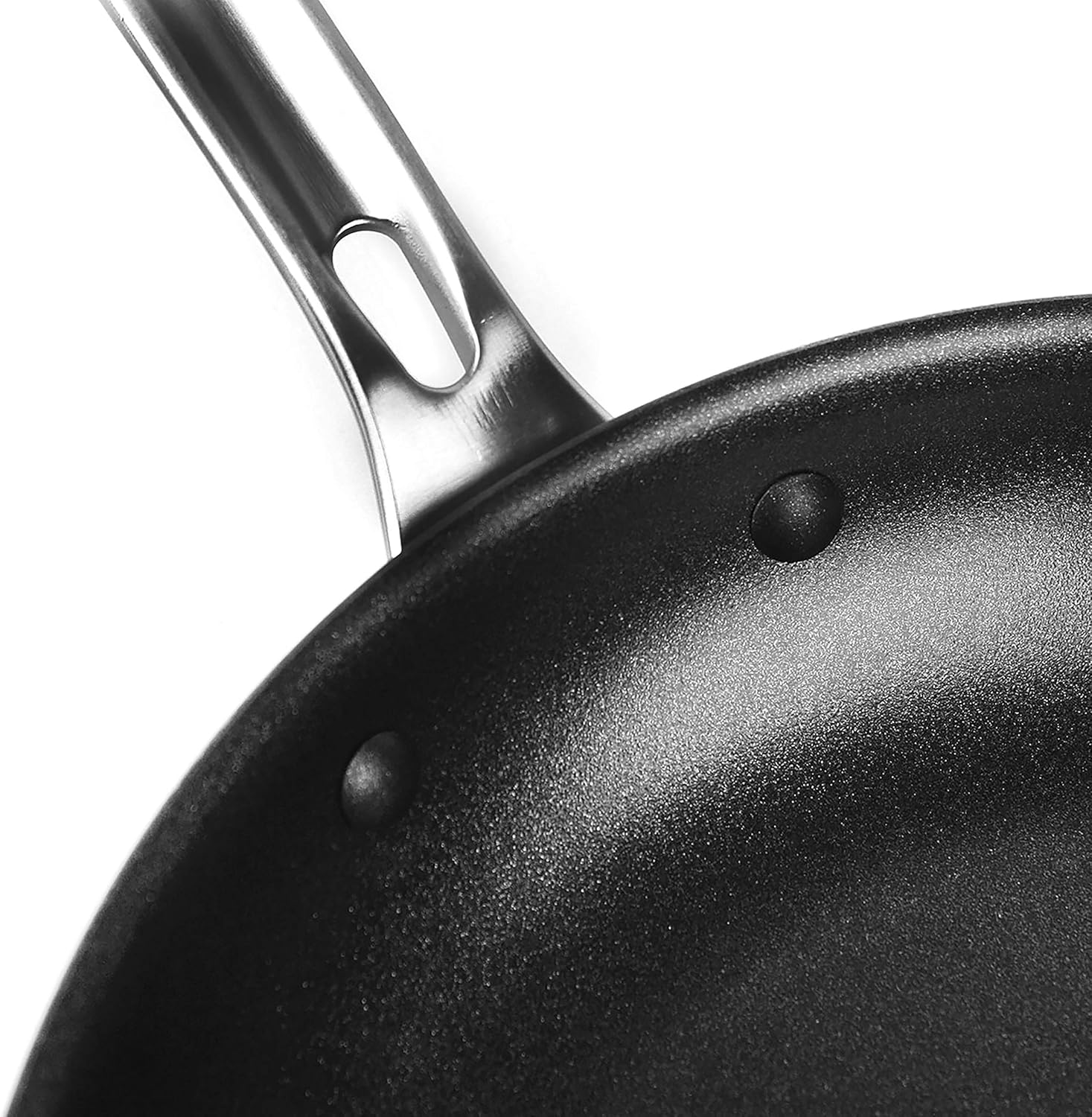 Heavy-gauge anodized aluminum for even warmth distribution; Induction Appropriate
