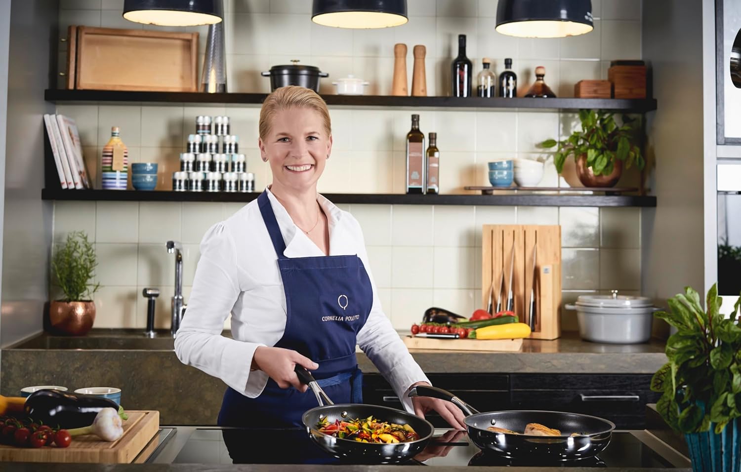 Cookware developed in collaboration with high chef Cornelia Poletto – an all-rounder pan for light frying of egg dishes, fish, greens, meat and rather more